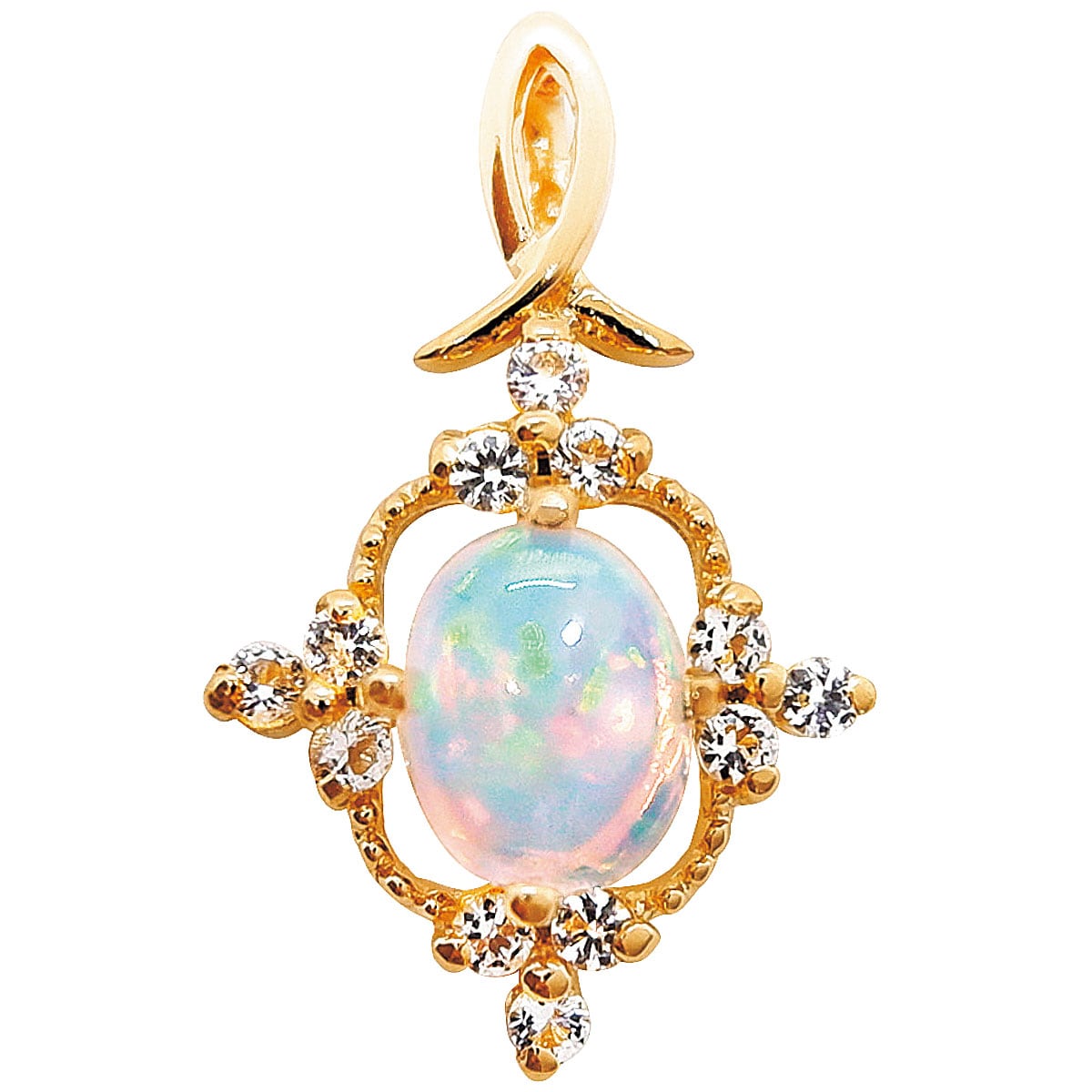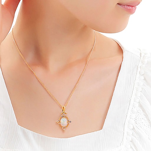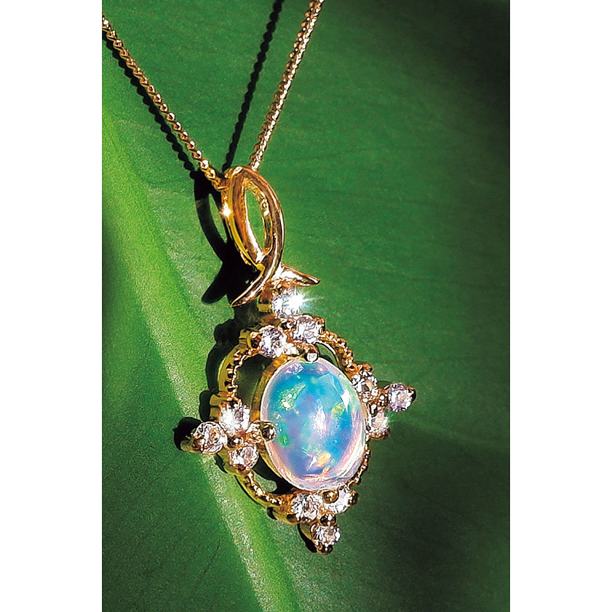 オパールは「希望の石」「幸福の石」として古くから愛されてきました。虹色の光がいつもの装いを上品に引き立て、お顔まわりを明るく華やかに見せてくれます。ーPOINTーオパールのまわりに、12石のホワイトトパーズを丁寧にあしらいました。ほのかに乳白色の透明感のある輝きが、胸元に上品な華やかさと神秘的な美しさを添えてくれます。