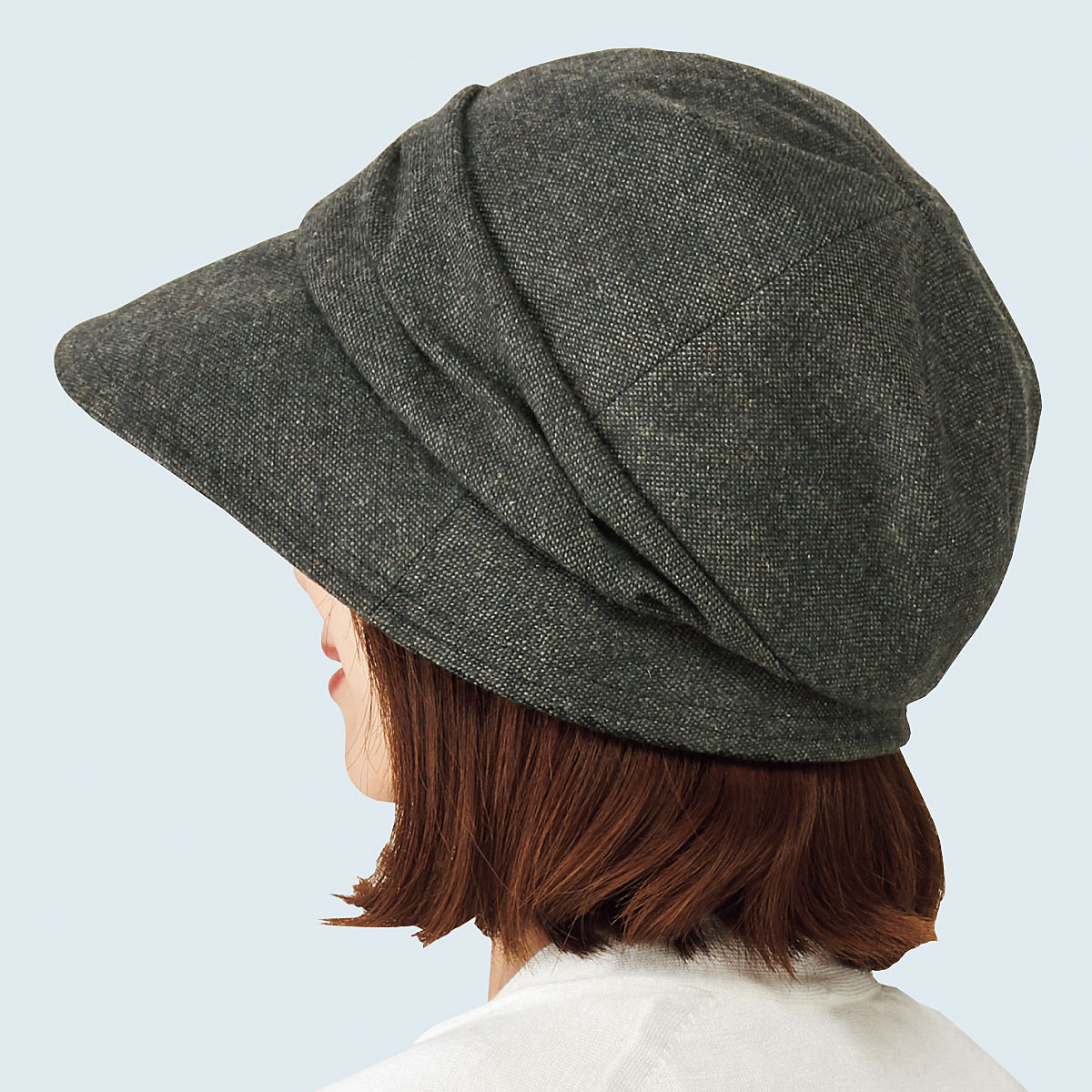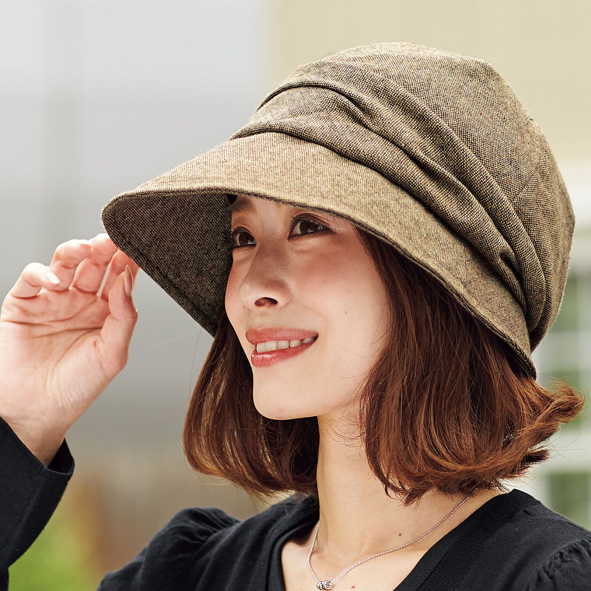 耳まですっぽりあったか帽子。広めのつばですっぴん隠しにも。ーこだわりPOINTー内側の紐でサイズ調節可。折りたたんでコンパクトに!