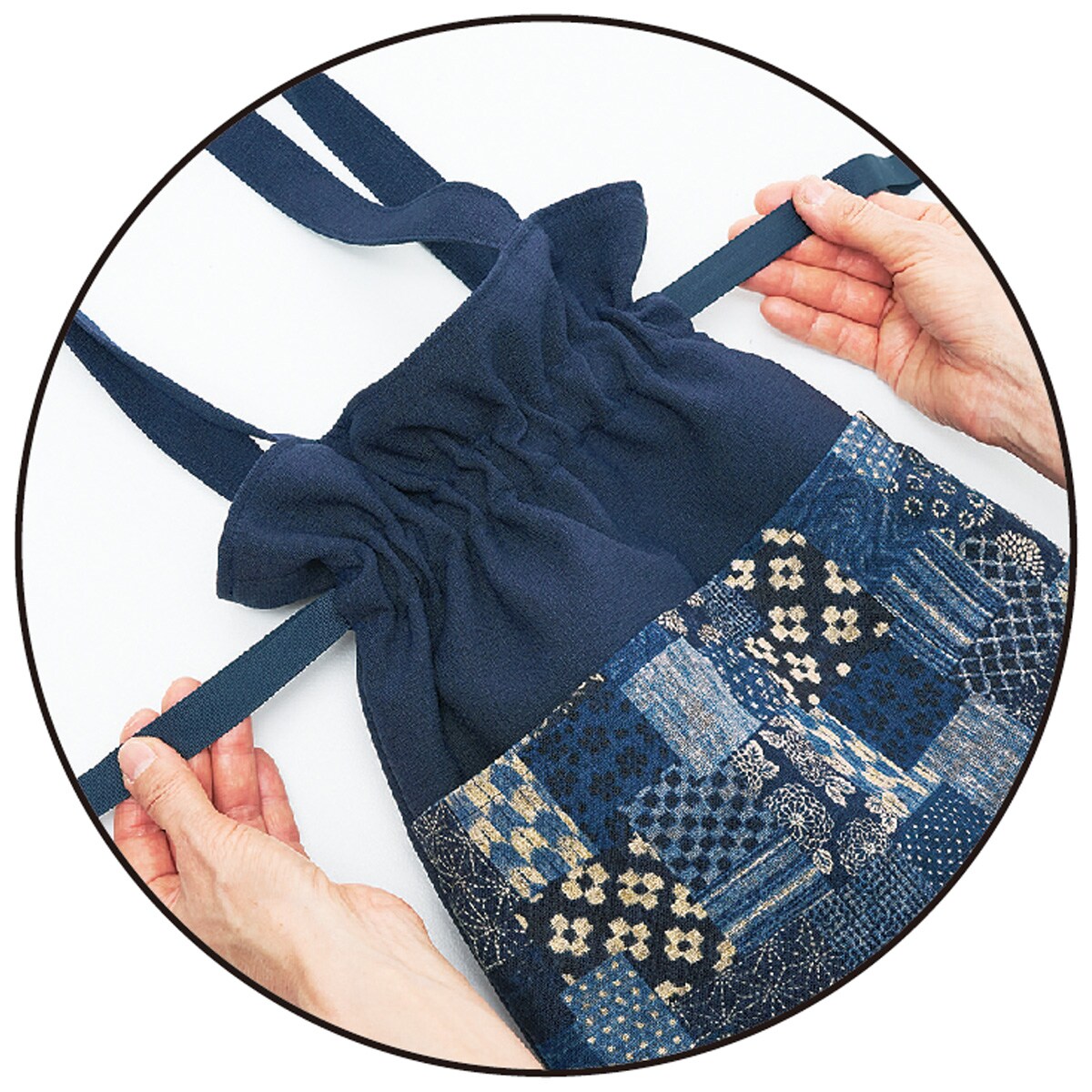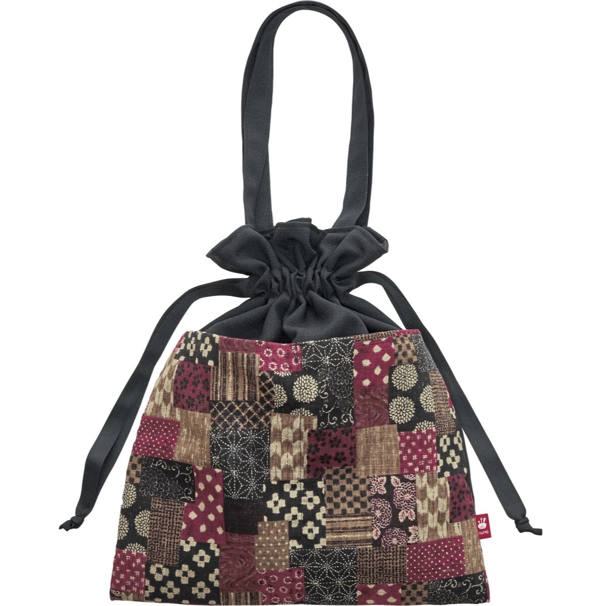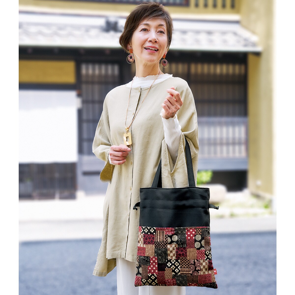 シーンに合わせて形や柄をチェンジ!国産きんちゃくトートバッグ。手洗いOKのため、お手入れもラク!お出かけやお買い物に。ーこだわりPOINTー4通りに使用可能1.A4サイズが入るトートバッグ。2.リボンを絞ってきんちゃくバッグに。3.裏返して無地のトートバッグとして。4.リボンを絞って無地のきんちゃくバッグに。~紡ぎとは~さまざまなものを集めて1つのものを作り出すこと。変化に富んだ和風のパッチワーク柄で上品な雰囲気に仕上げた逸品です。