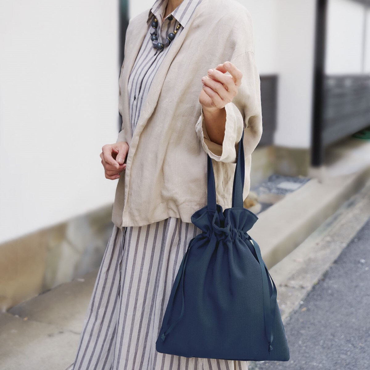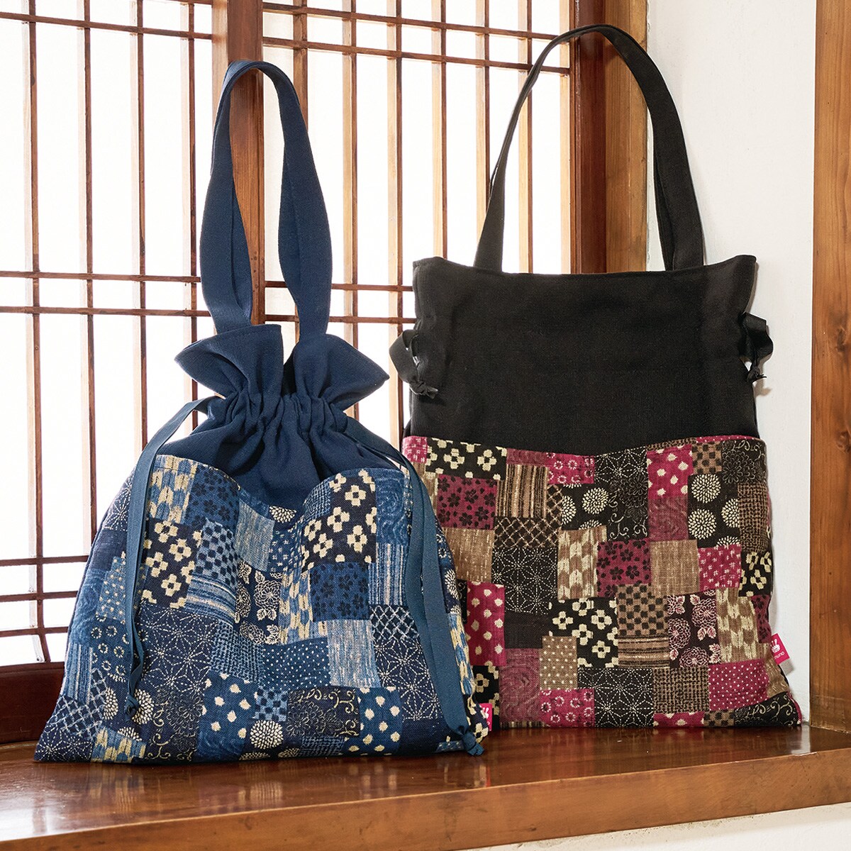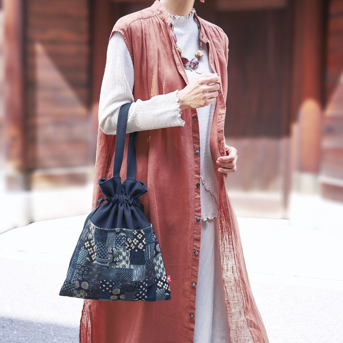 シーンに合わせて形や柄をチェンジ!国産きんちゃくトートバッグ。手洗いOKのため、お手入れもラク!お出かけやお買い物に。ーこだわりPOINTー4通りに使用可能1.A4サイズが入るトートバッグ。2.リボンを絞ってきんちゃくバッグに。3.裏返して無地のトートバッグとして。4.リボンを絞って無地のきんちゃくバッグに。~紡ぎとは~さまざまなものを集めて1つのものを作り出すこと。変化に富んだ和風のパッチワーク柄で上品な雰囲気に仕上げた逸品です。