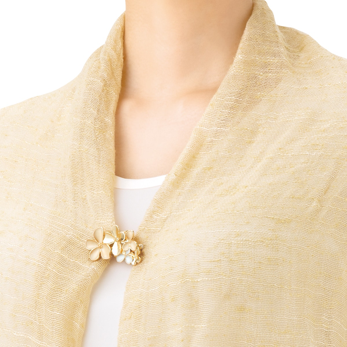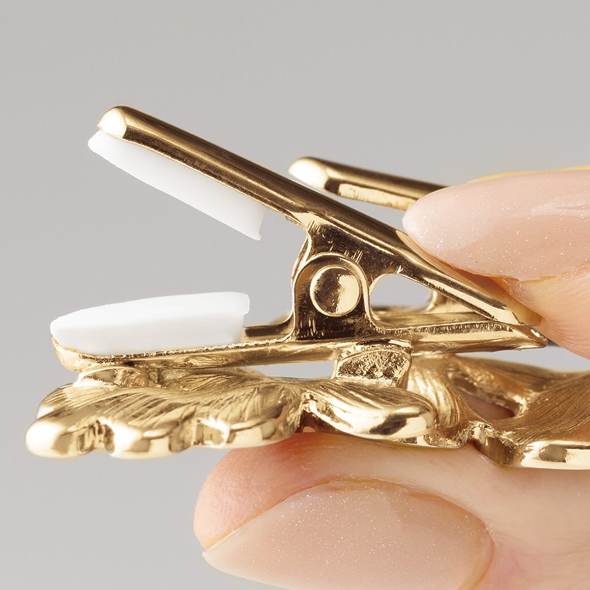 ストールなどのずり落ちや胸元の開きをカバー。クリップで挟むだけで、コーディネートのワンポイントに!マフラーやウエストのサイズ調節にもおすすめ。ーこだわりPOINTー2つのクリップでピタッと留まる。針がないクリップタイプで生地を傷めにくい。シリコンの滑り止め付き。