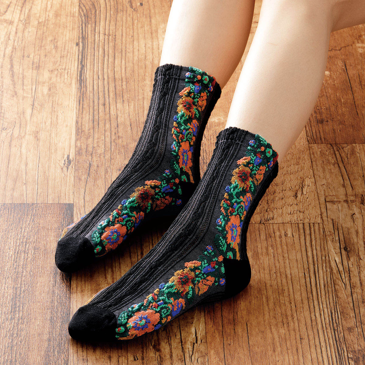 包み込むようなやさしい履き心地で、つま先までぬくぬく。~フロート編みとは~特殊な技法で表糸を部分的に飛ばして模様を浮かび上がらせるフロート編み。立体感が生まれ足元華やか。