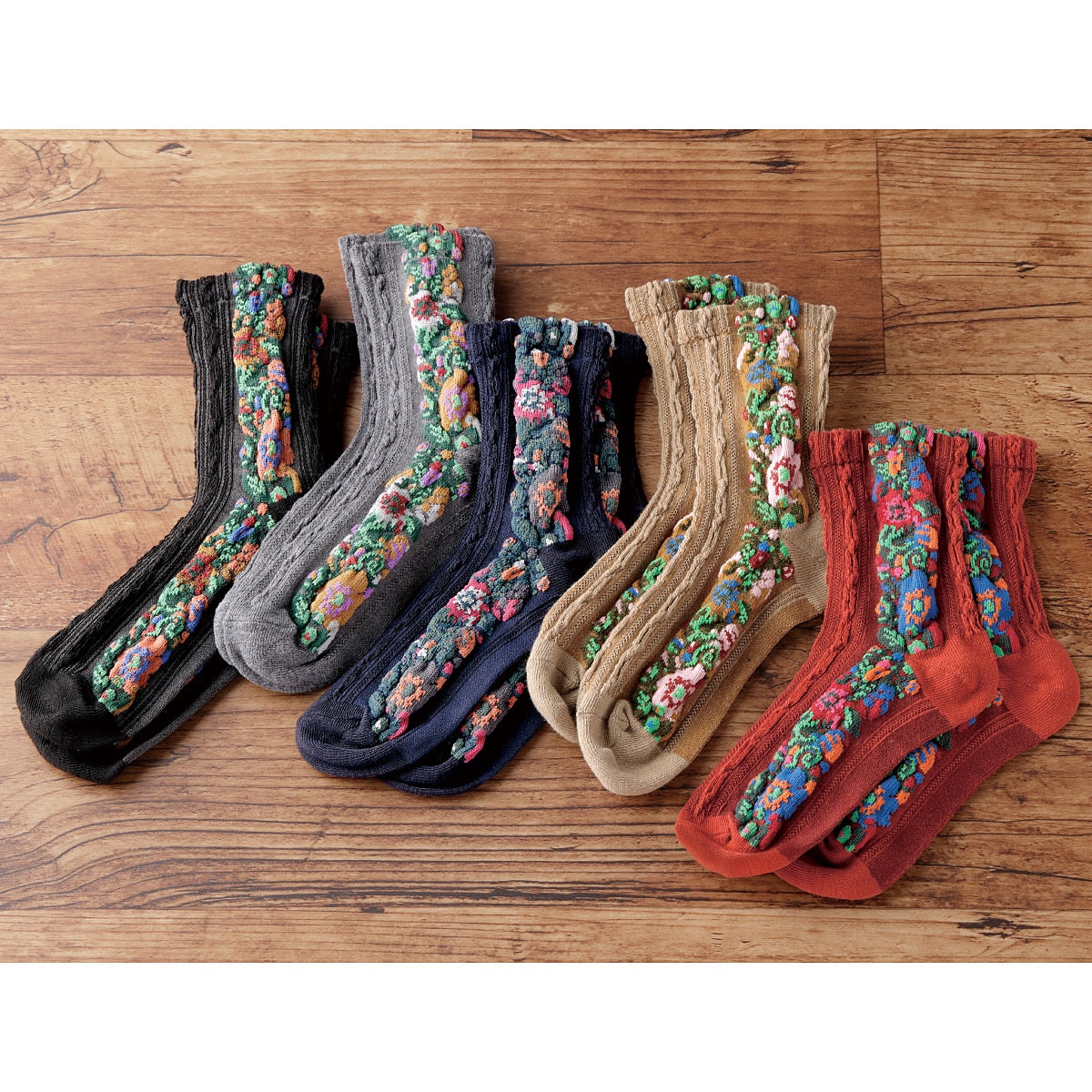 お洒落ふっくらフロート編みソックス 5色組
