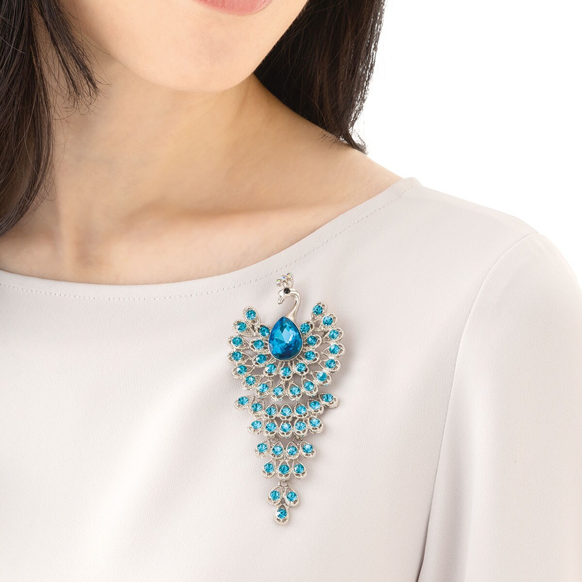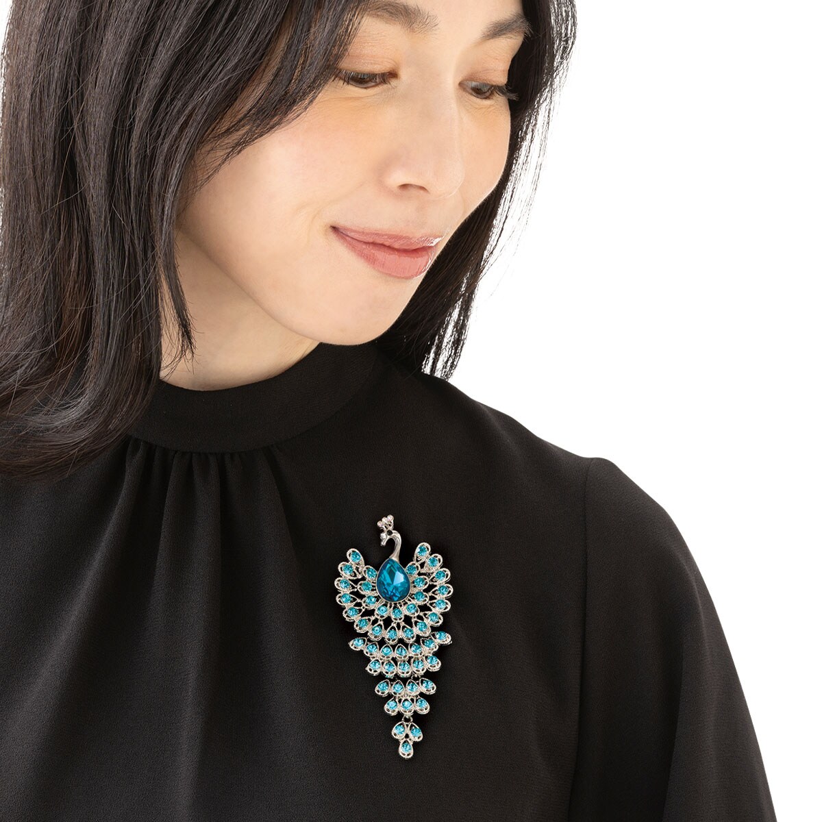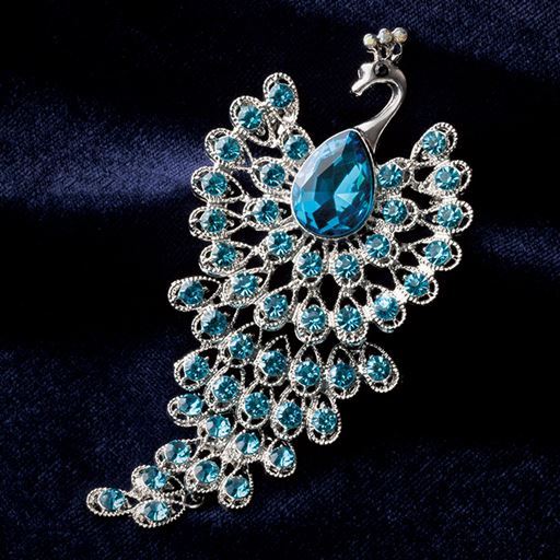 大人女性の装いに上品な華やかさを添える孔雀ブローチ