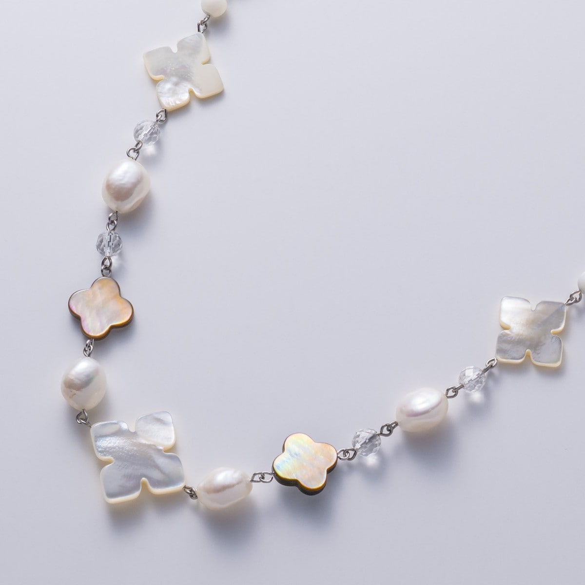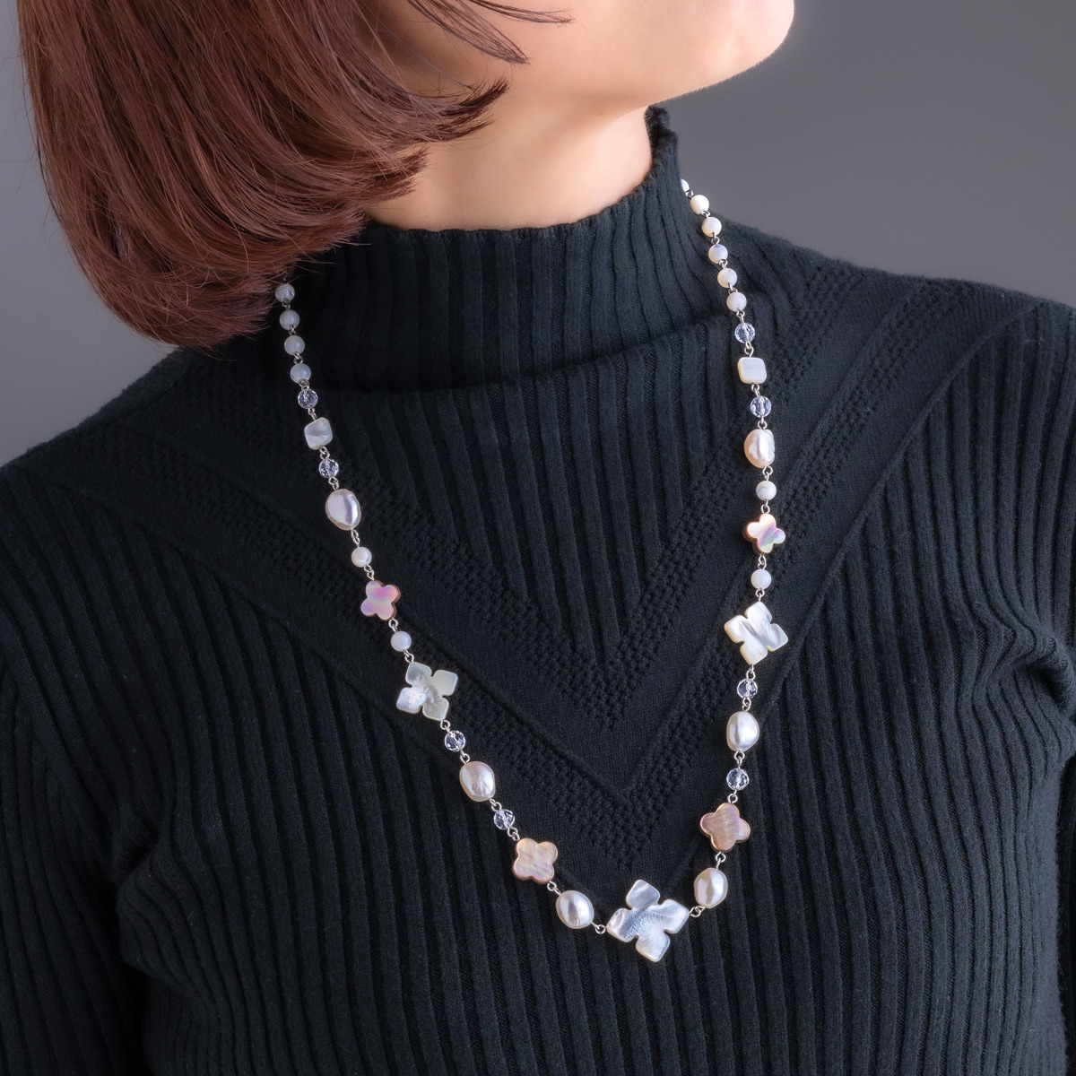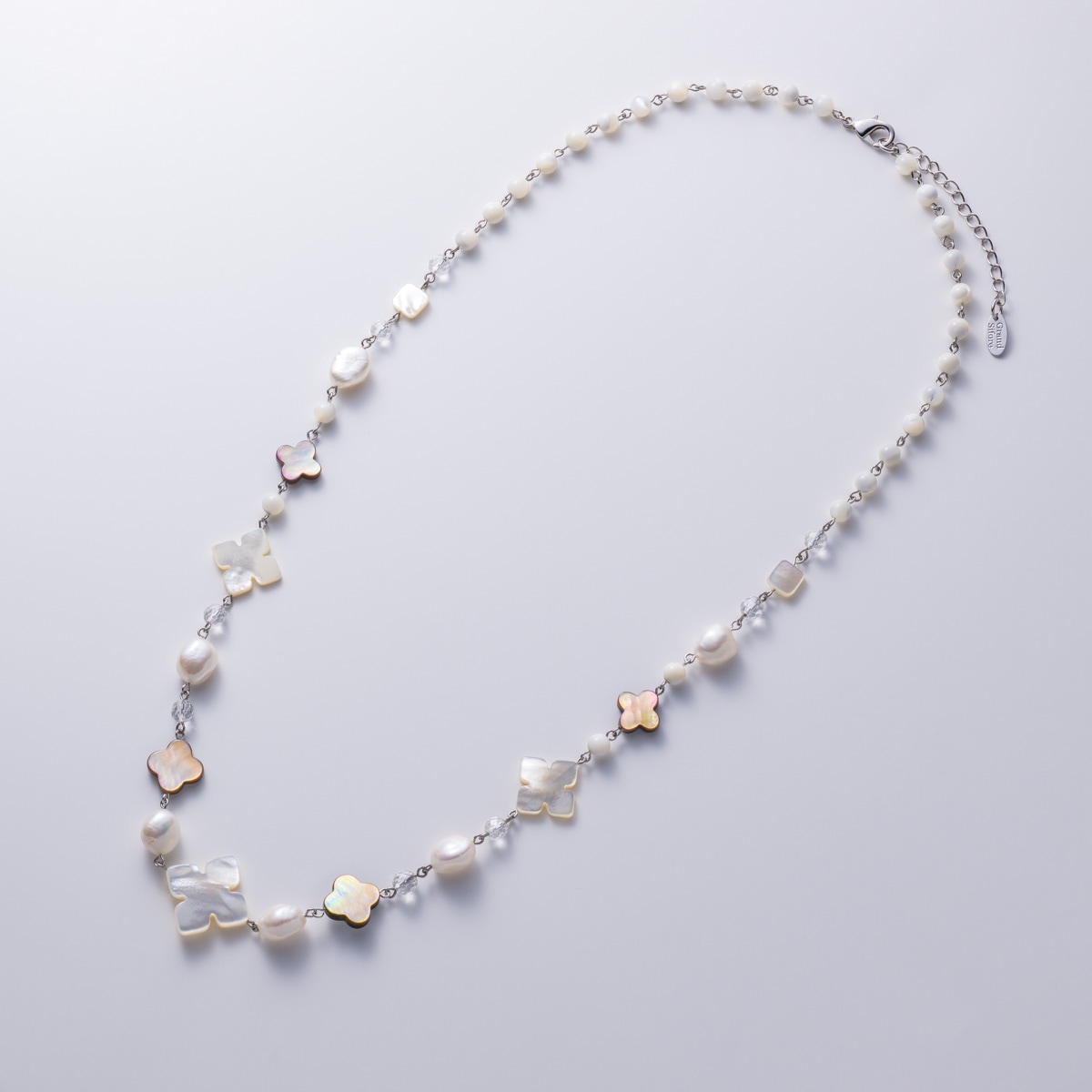 ■材質/[珠]シェル、淡水パール、水晶、真ちゅう■フック式■サイズ(約cm)/[全長]76(アジャスター含む)[最大幅]2.5■重量(約g)/35●日本製※自然素材を使用しているため、1点ごとの色合いや形状、模様等が異なる場合がございます。