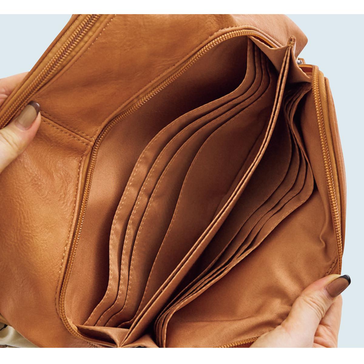賢くしまえる本体内側ポケット たっぷり入るメイン収納。 ファスナーポケット オープンポケット