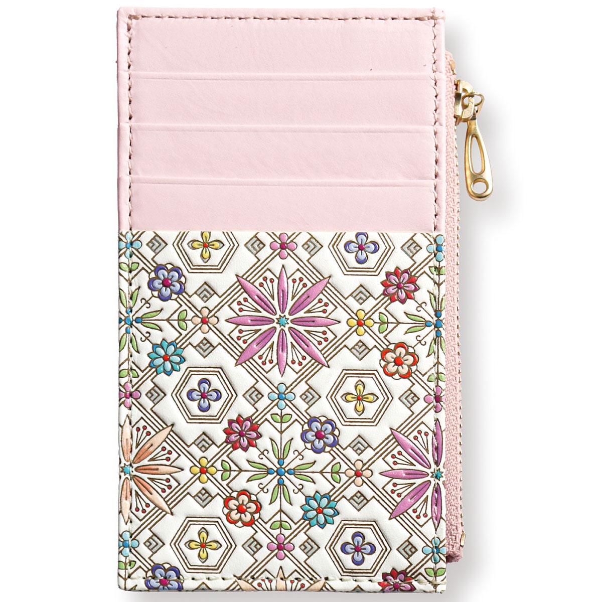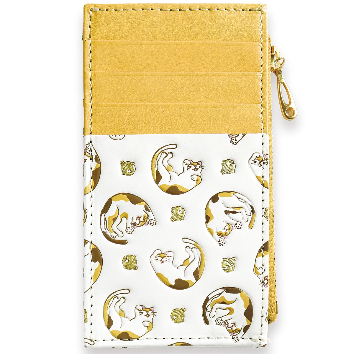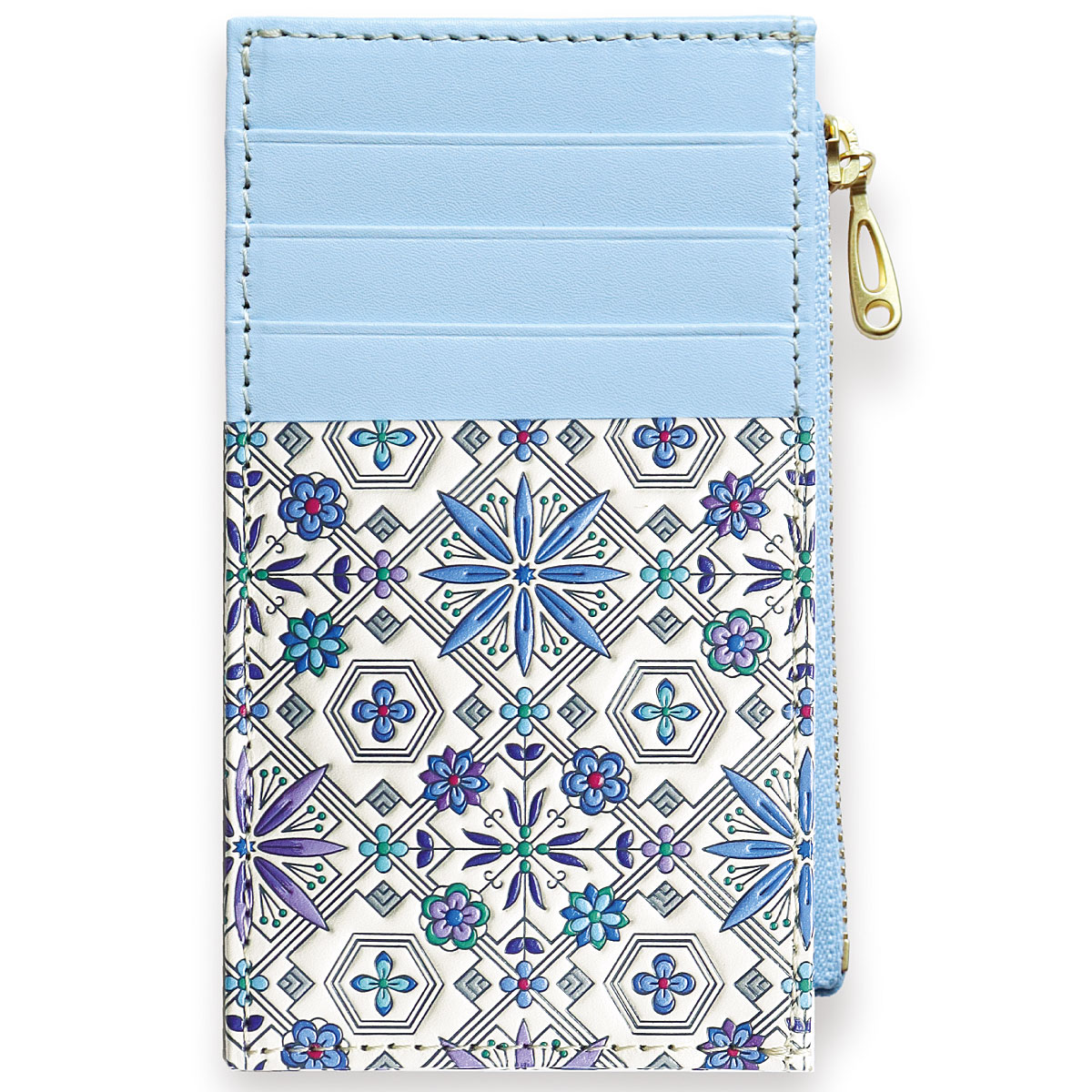 ーデザインーねこ(イエロー系・ブラック系)…愛らしい姿でころころと転がる猫たち。立派なおひげと、可愛い肉球がチャームポイント。花菱(ピンク系・ブルー系)…ひとつひとつに想いを込め、四季折々の縁起が良いとされる草花を5種類あしらいました。心華やぐ美しい意匠です。~浅草文庫® ASAKUSA BUNKO~白くなめされた革に、色鮮やかな絵柄を描いた浅草文庫。友禅の技を駆使し、職人が丹念に作り上げます。白革に寸分のズレがないよう一色ずつ色を重ね、立体感を出すために型押しして、生き生きとした表情を与えていきます。汚れにくい加工も施されており、使いやすさや機能も十分です。■素材/[表]牛革 [内側]牛革、レーヨン ■サイズ(約cm)/7.5×13×1.5 ■重量/約35g ■仕様/[開閉]ファスナー式 [内側]オープンポケット×1[外側]カード入れ×4、オープンポケット×1 ●化粧箱入り※職人が一点一点丁寧に製作しているため、多少趣が異なる場合がございます。 ※天然革の特性上、商品によって多少色や柄が異なります。●日本製