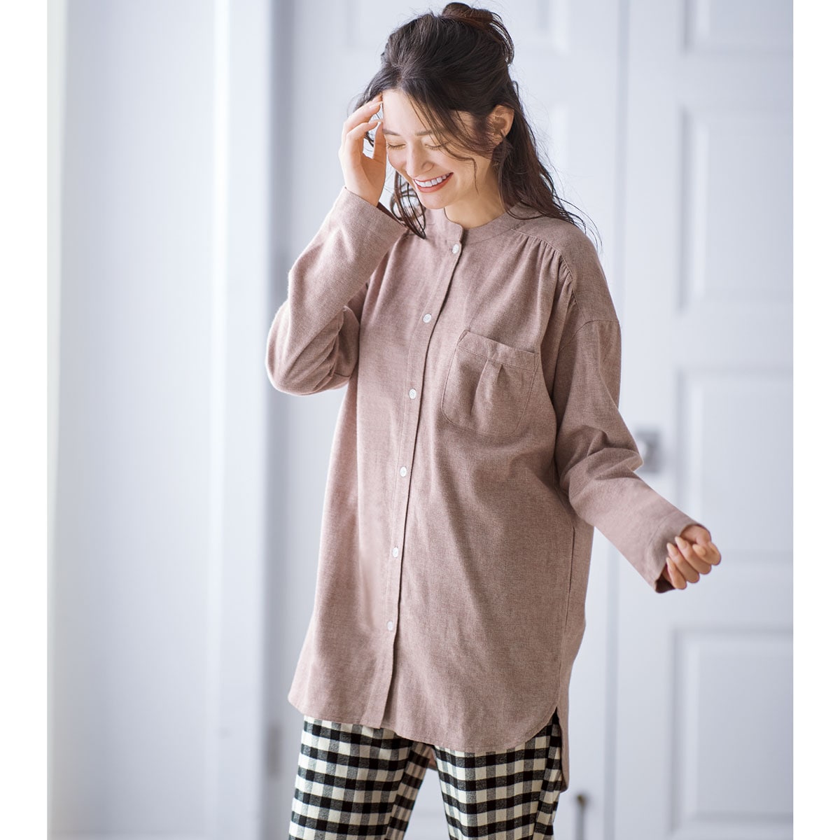 コットン生地をふんわり起毛しているから、ぬくぬくしあわせな着心地。一日ずっと着ていたくなる綿100%やわらかフランネルの巣ごもりパジャマ