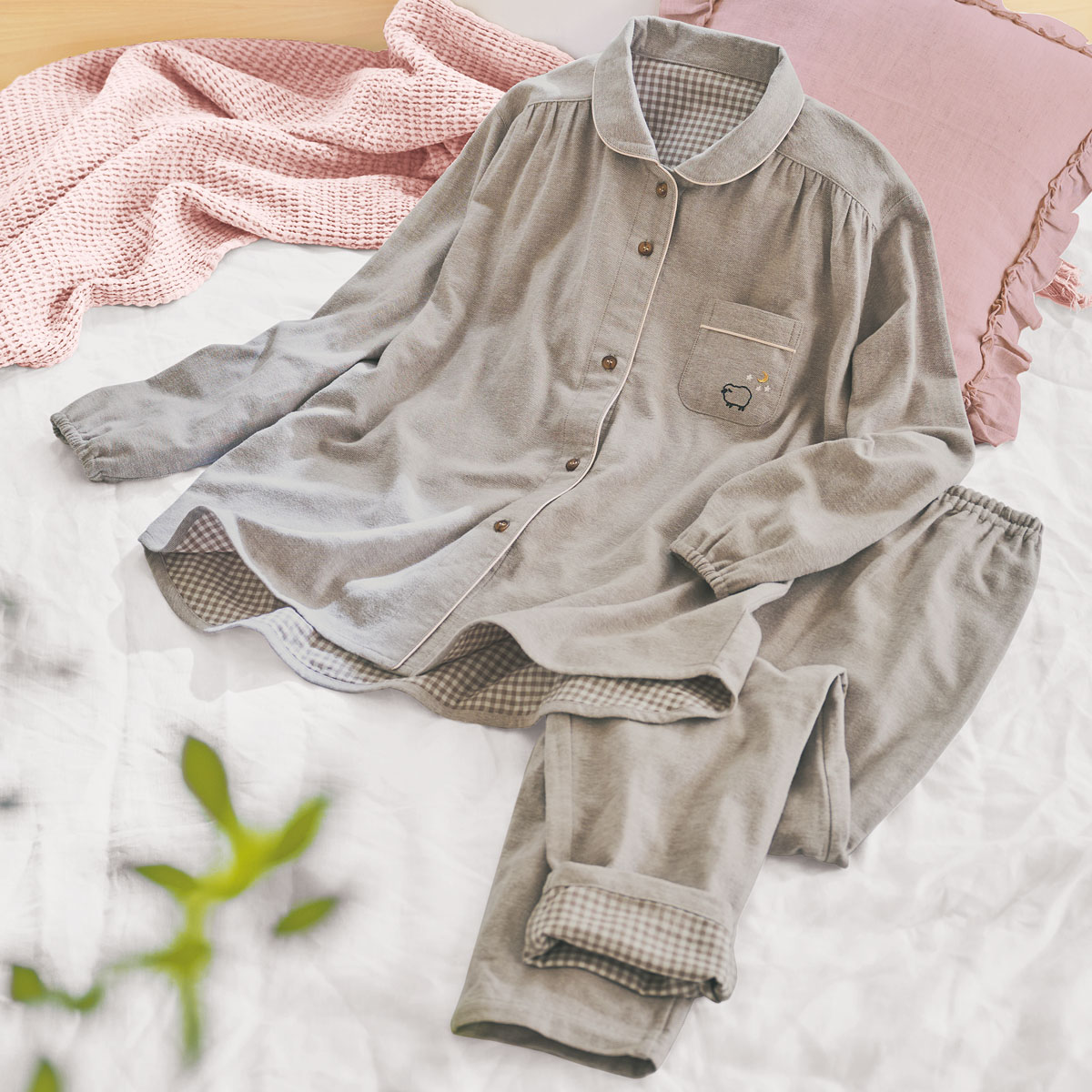 ネル起毛裏ガーゼのふかふかシャツパジャマ