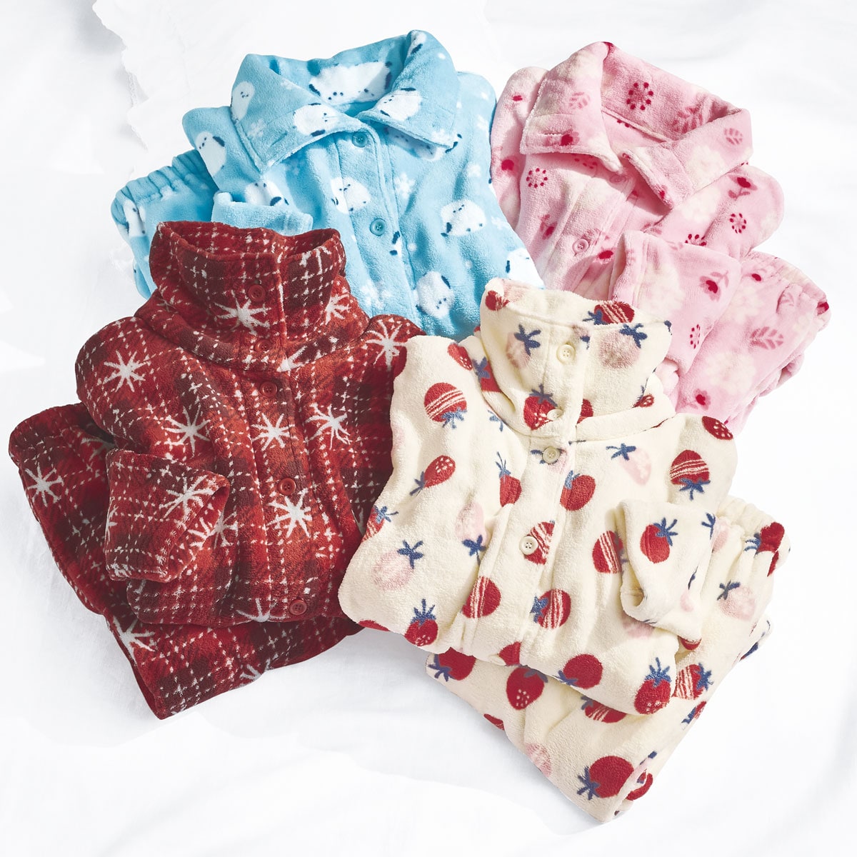 寒がりさんにも人気の、ぬくぬく気持ちいいパジャマ。ふわふわもこもこの肉厚感とふんわり感とあたたかさは、手放せなくなる心地よさ。通常よりも太い糸を使用しているのでボリュームたっぷり。ふっくらあたたかなのに軽い着心地で、洗濯しても乾きが速いのもうれしいポイントです♪衿元のボタンでハイネックにもできる2way仕様だから、寒い夜も首元暖か。心もほっこり癒されるかわいい柄デザインが揃いました。小さいサイズ・大きいサイズも展開(S~6L)