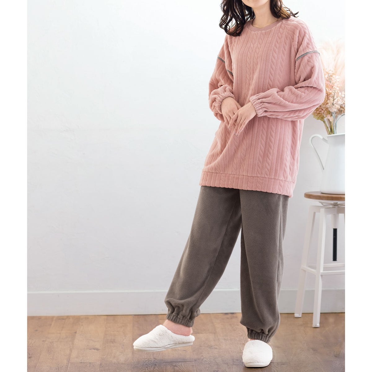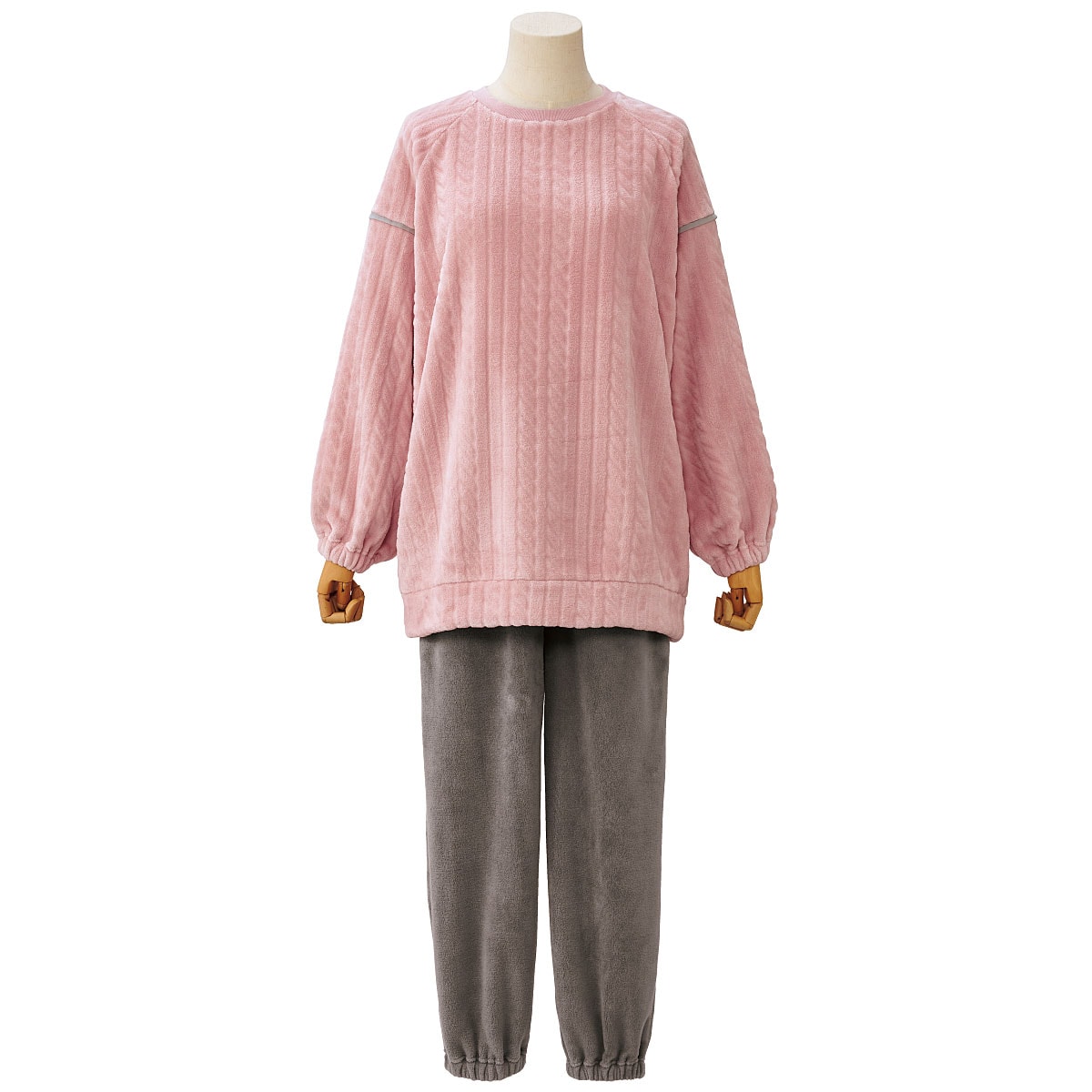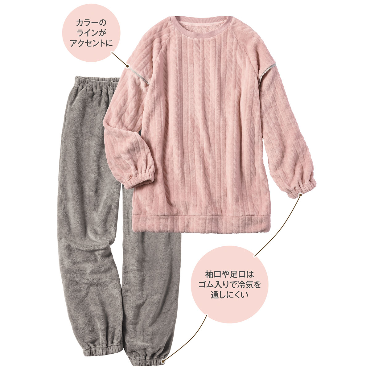 ケーブル柄フリースのゆったりTタイプパジャマ