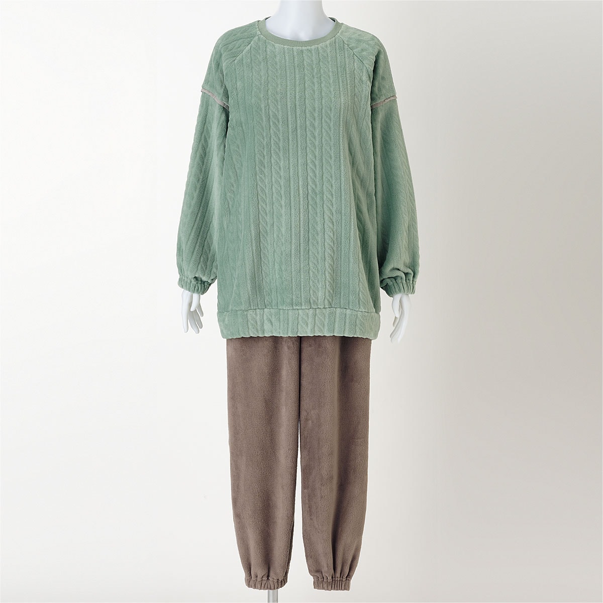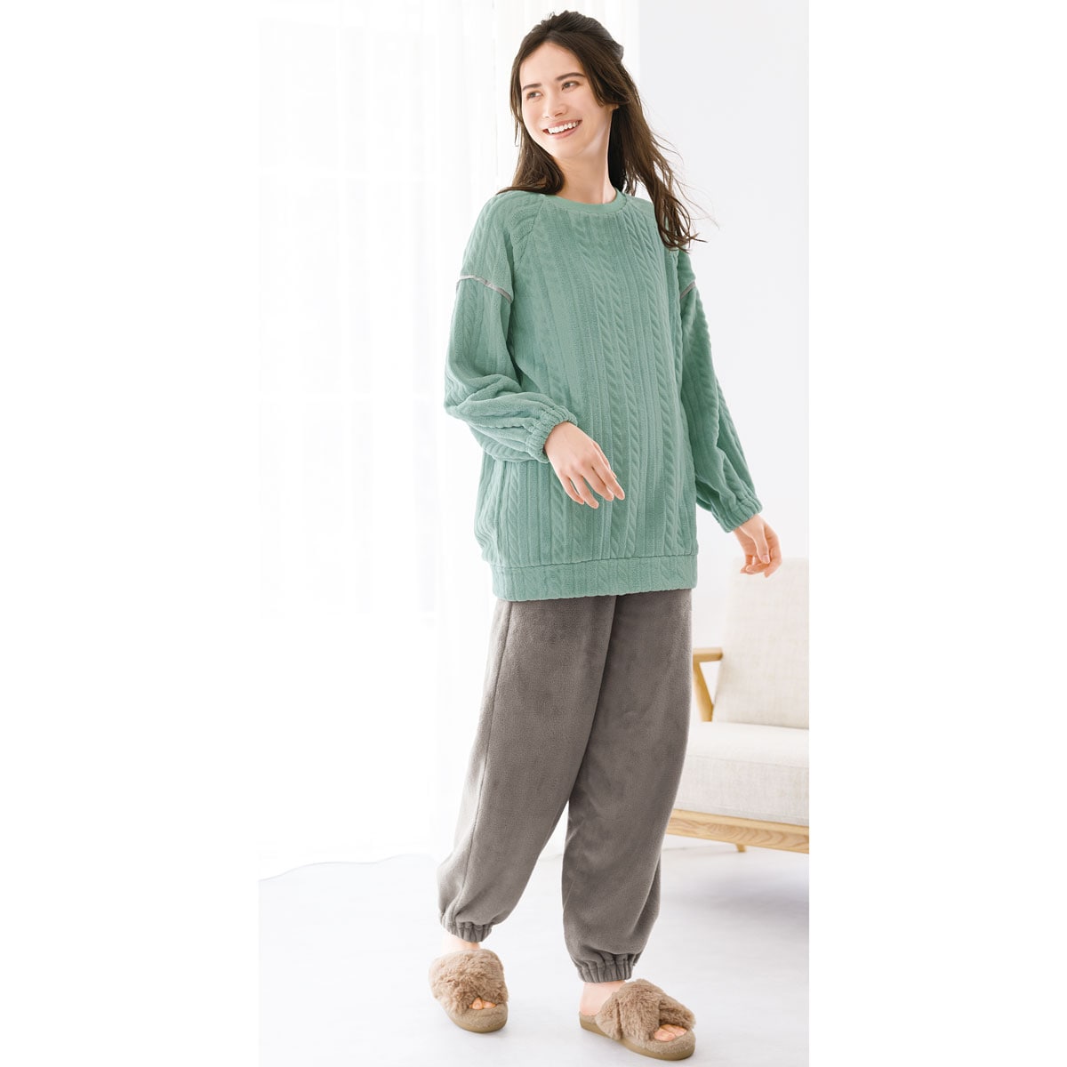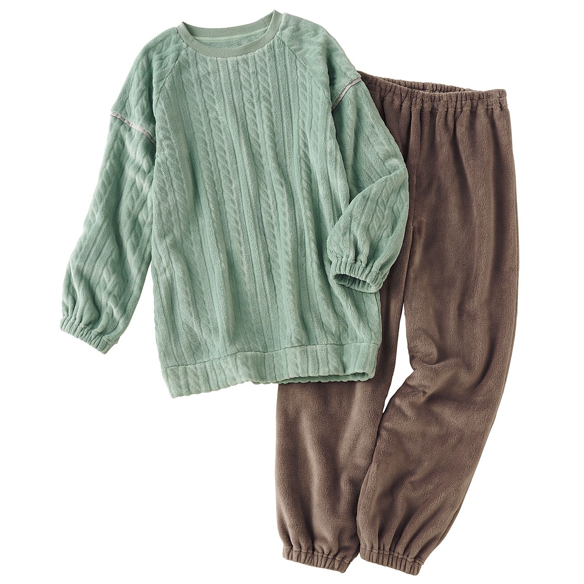 ケーブル柄フリースのゆったりTタイプパジャマ
