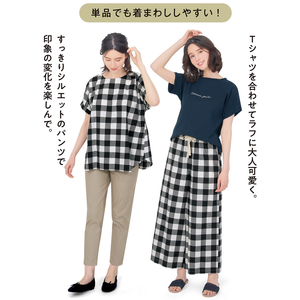 一日中快適に過ごせる、簡単おしゃれなおうち服♪ふっくらさん対応サイズplump(プランプ)もあります。
