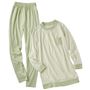 薄手でやわらかな綿100%天竺素材を2枚合わせにすることで、空気を含んでほんのりあたたかさキープ。トップスはヒップまですっぽり包み込むロング丈、首元が冷えにくいほどよい丸首衿、ゆったりとしたラグランスリーブであたたかく動きやすい。パンツは長めの11分丈で足首まであったか。ウエストはおなかを締め付けにくいソフトゴムを使用し、着心地にもこだわりました。やさしい温もりと肌触りで快適な眠りへと誘います。