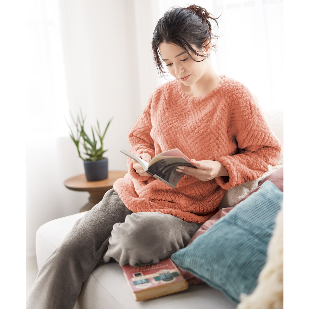でこぼこ感のある、もこもこフリースがかわいいルームウェア。やわらかな肌ざわりと心地よいぬくもりで体を包み込みます♪ふっくらさん対応サイズplump(プランプ)もあります。
