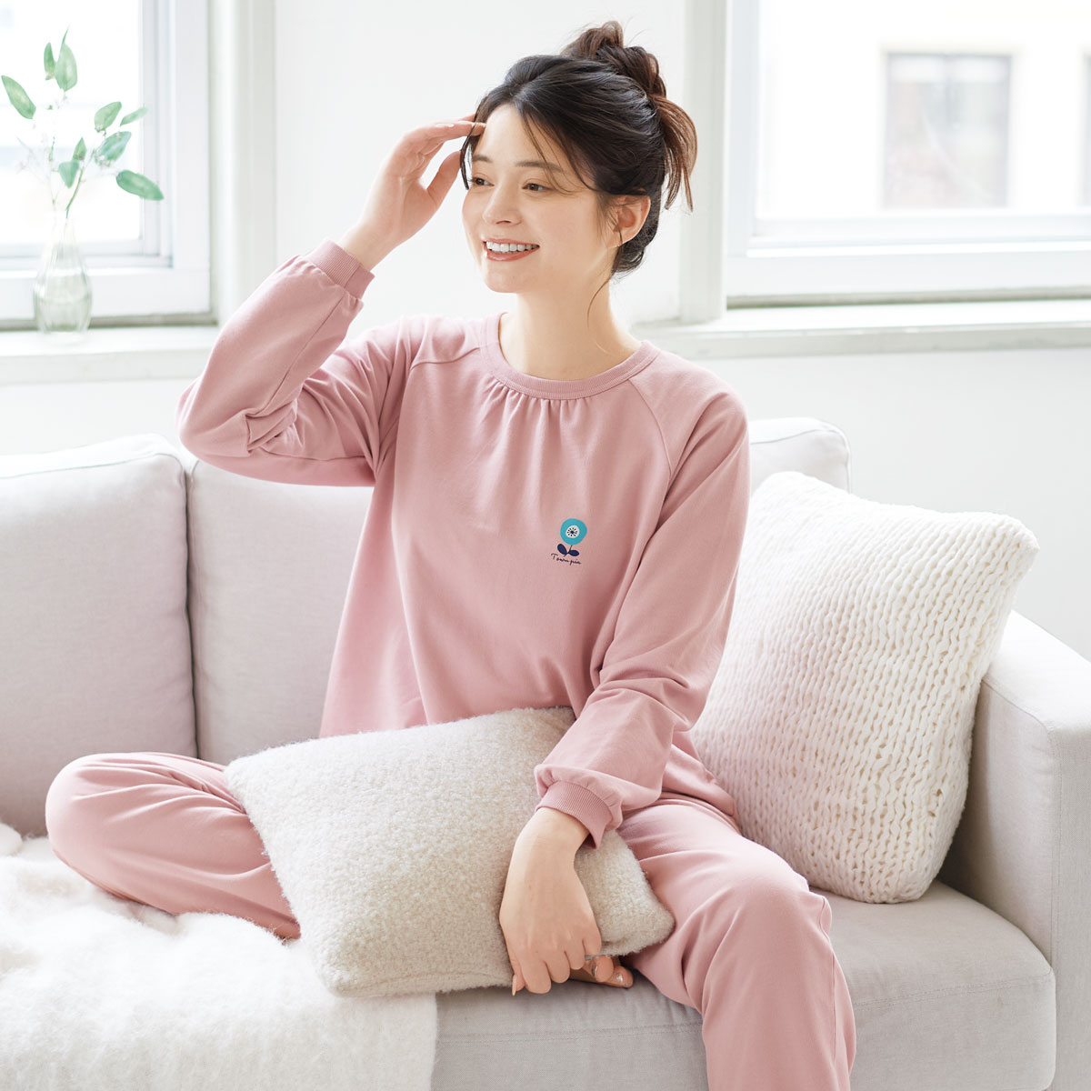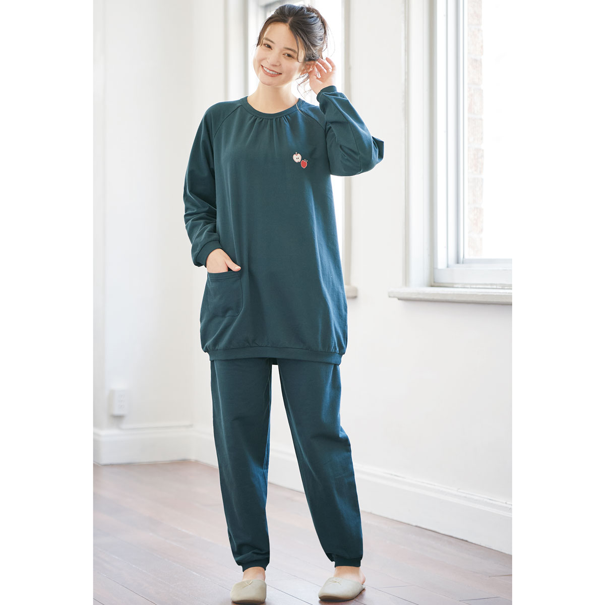 【リニューアル】(旧品番NI-734)ころんとした印象はそのまま、より着やすいようにパンツをすっきりシルエットに♪ルームウェアにもパジャマにも使えて、綿100%ミニ裏毛の肌ざわりもうれしい、レディーススウェット!ふっくらさん対応サイズplump(プランプ)もあります。