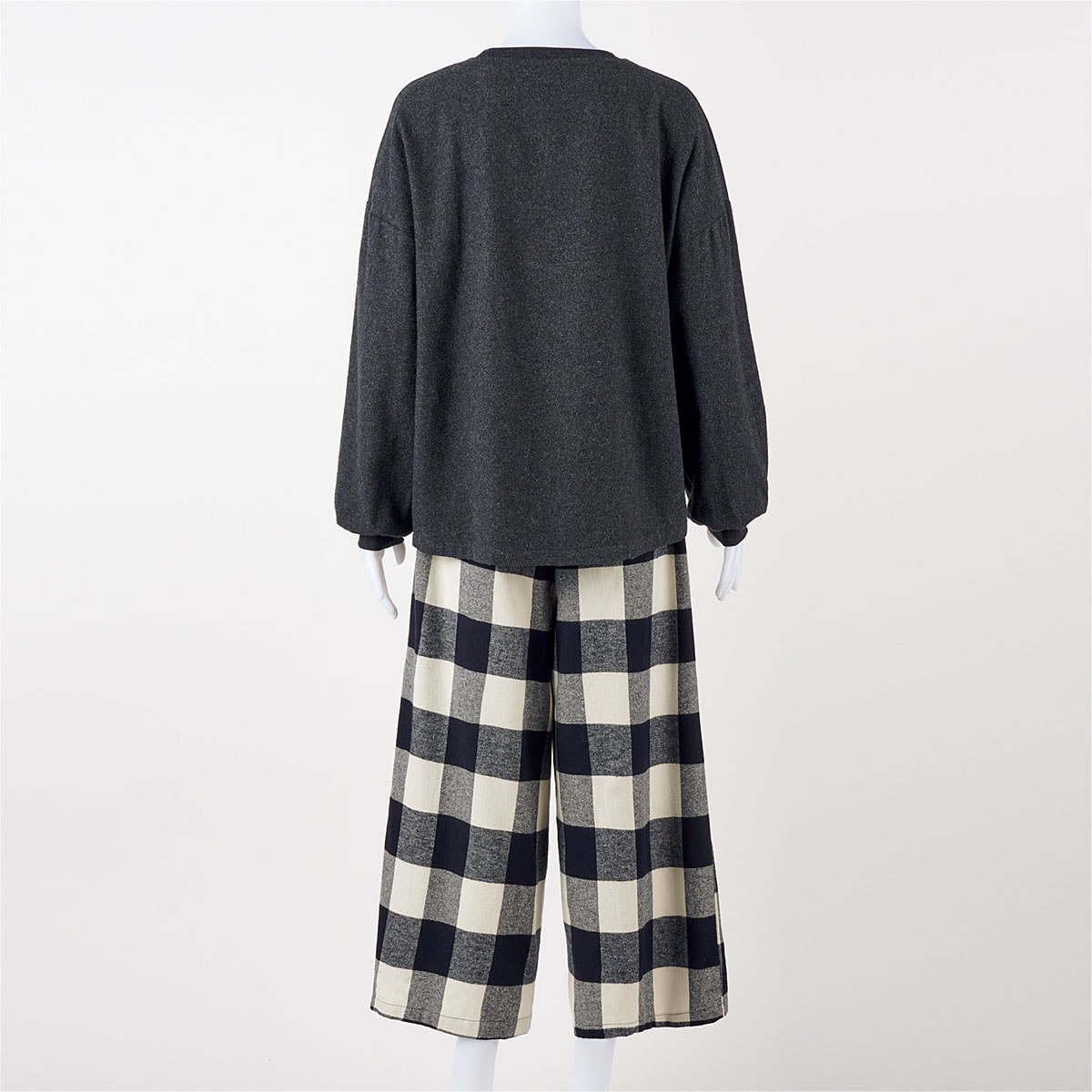 チャコールグレー (パンツ:ブラック×アイボリーチェック)