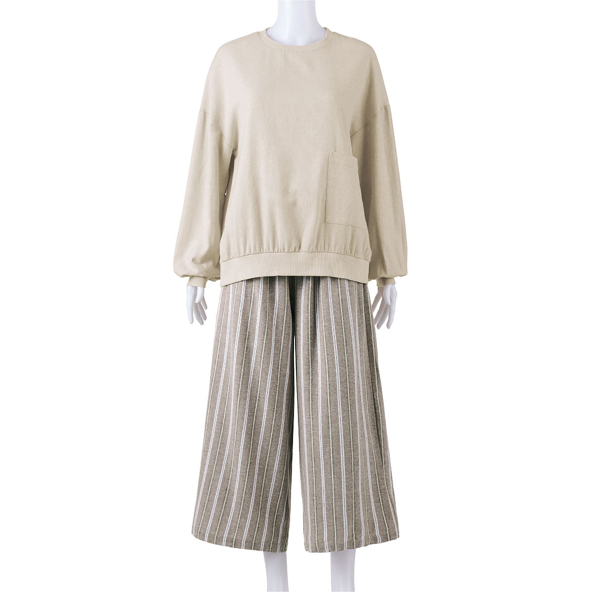 べージュ(パンツ:ブラウン系ストライプ) 上下セット