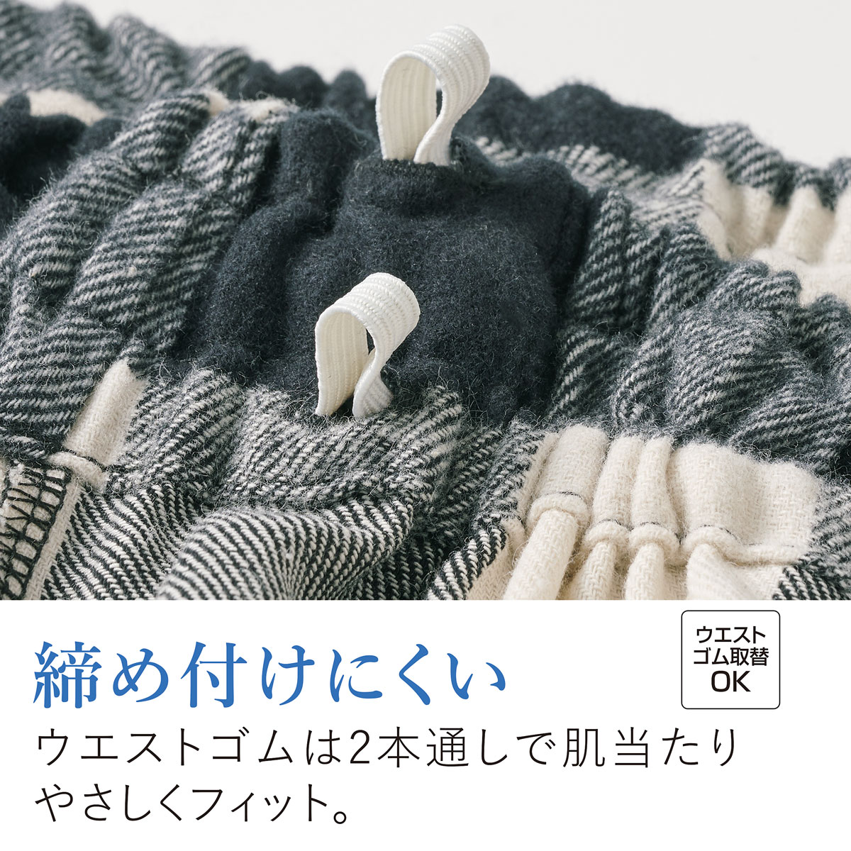 ウエストゴム2本通しでお腹を締め付けにくくやさしくフィット。