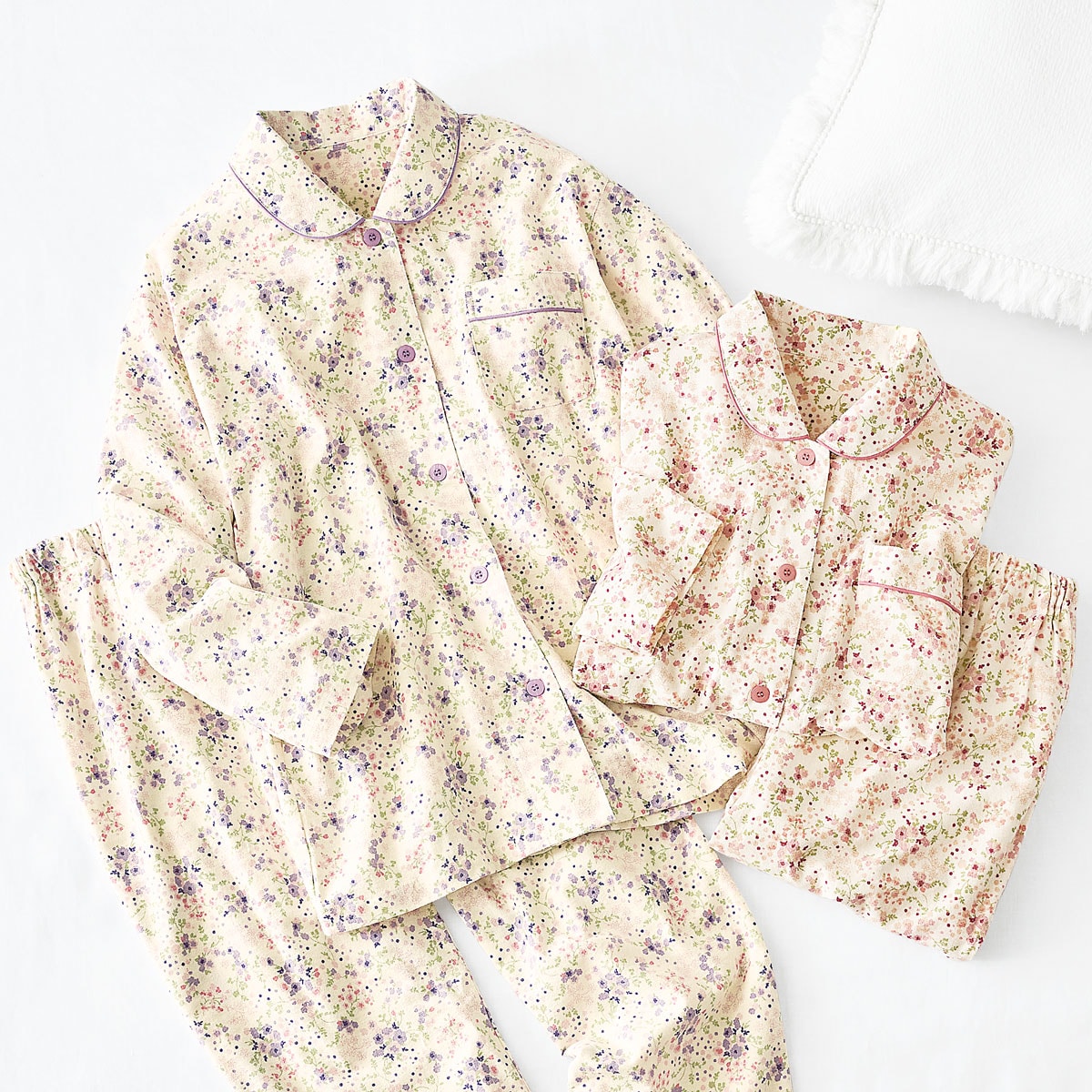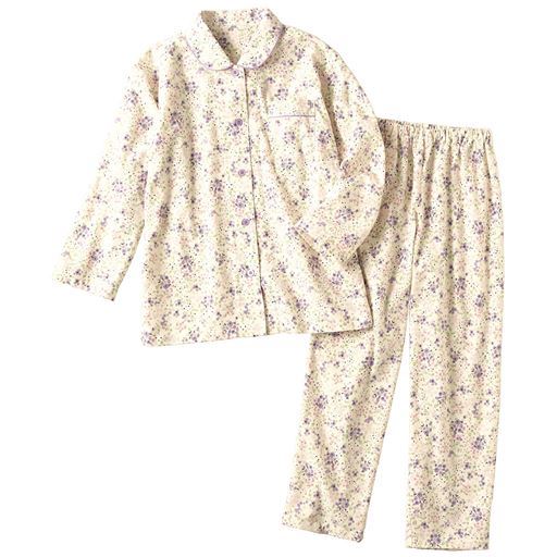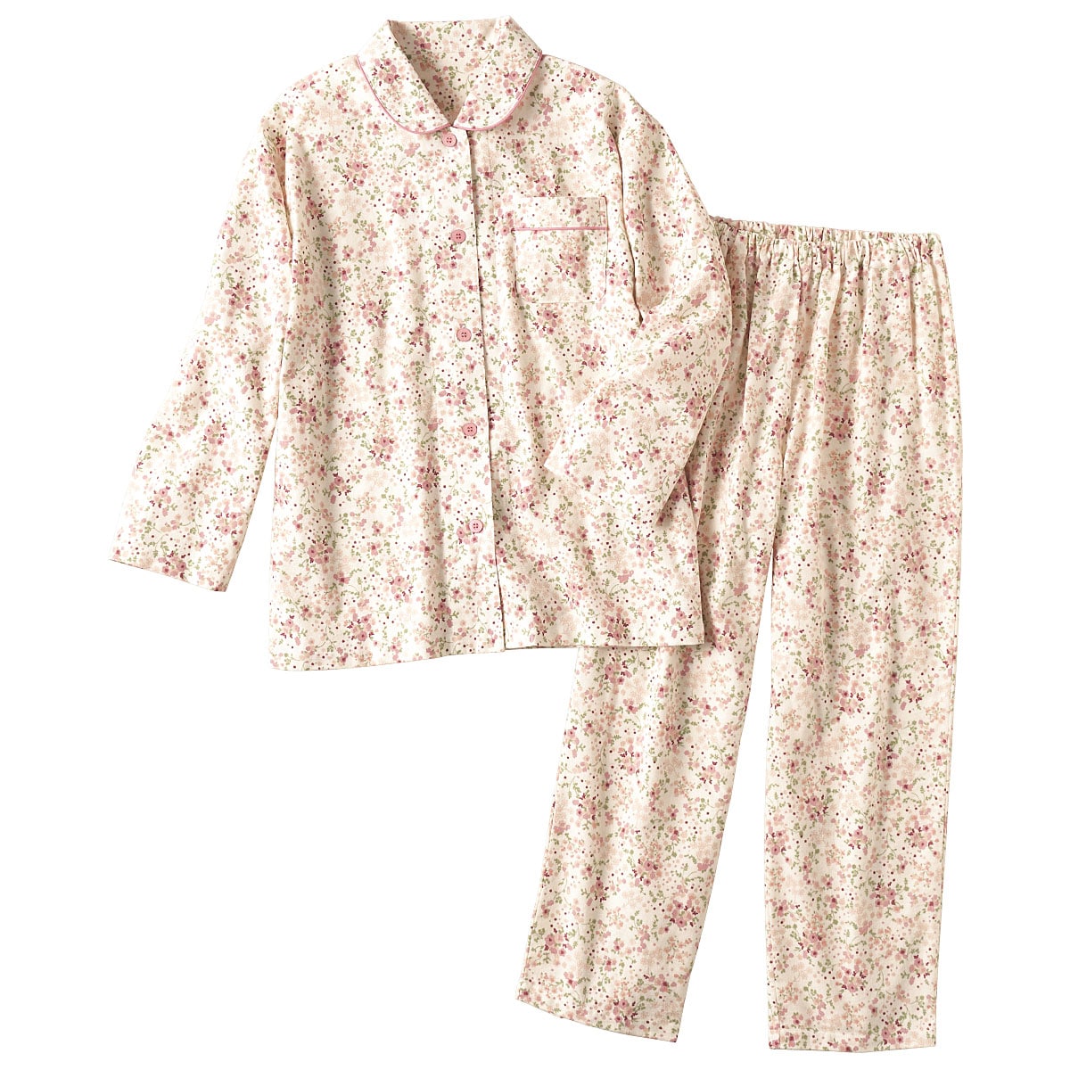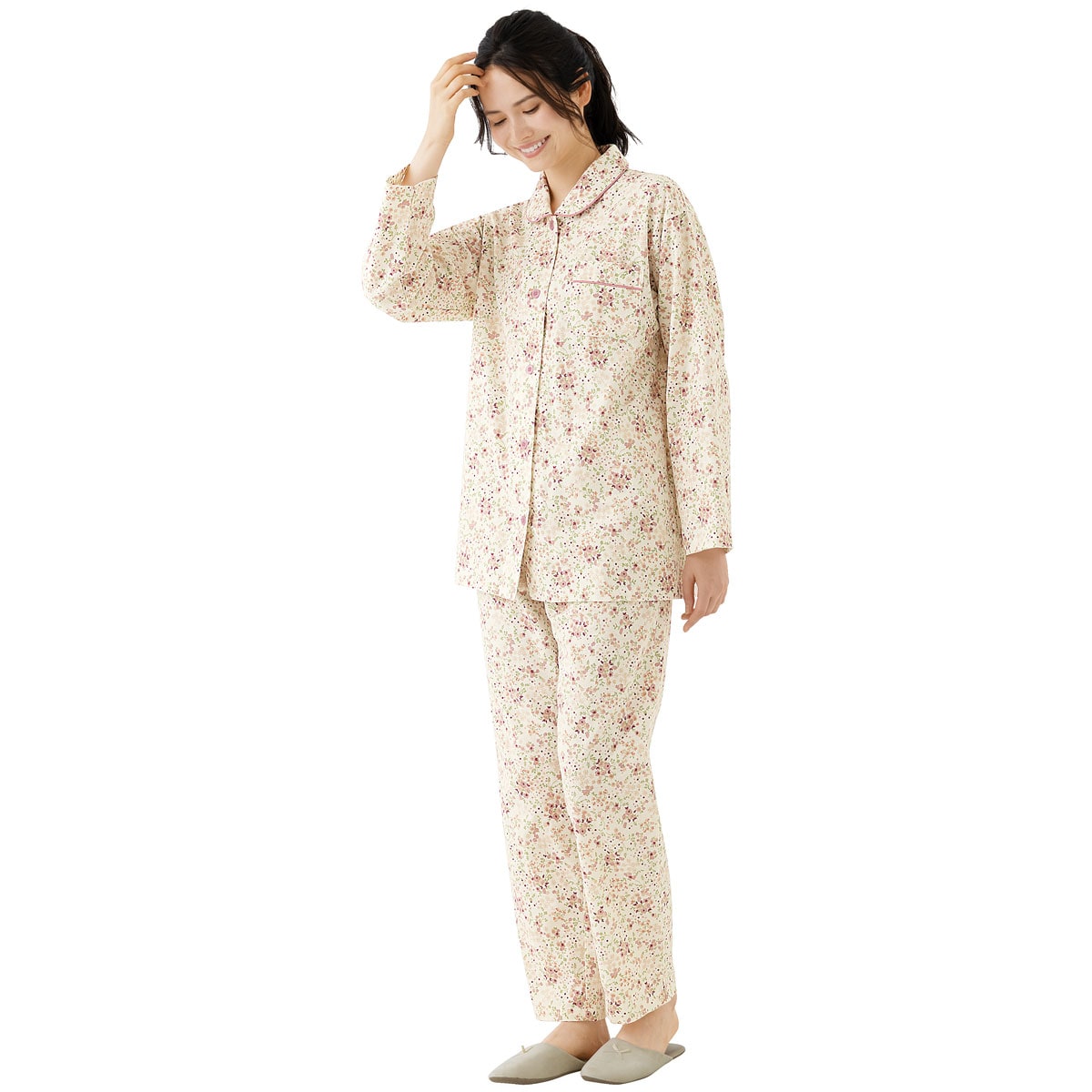 ふんわり起毛が肌になじんで心地よい、綿100%フランネルの小花柄シャツパジャマ。