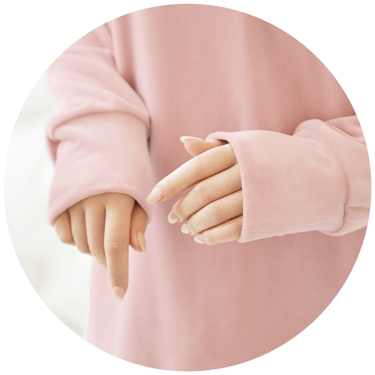 手首 長め袖で手の甲まですっぽり。
