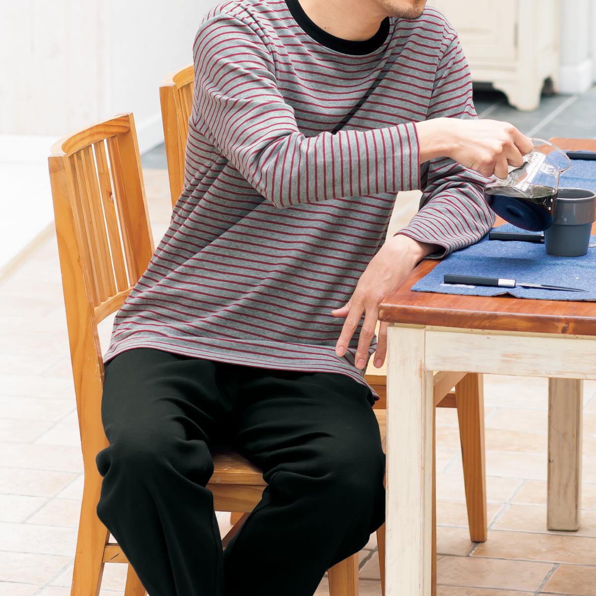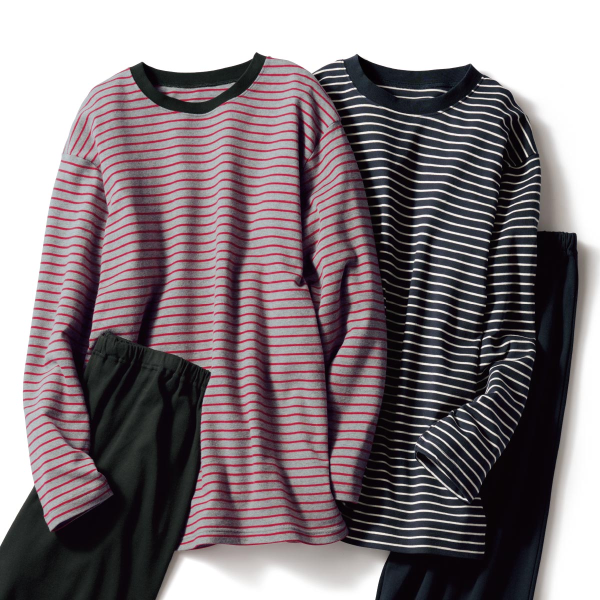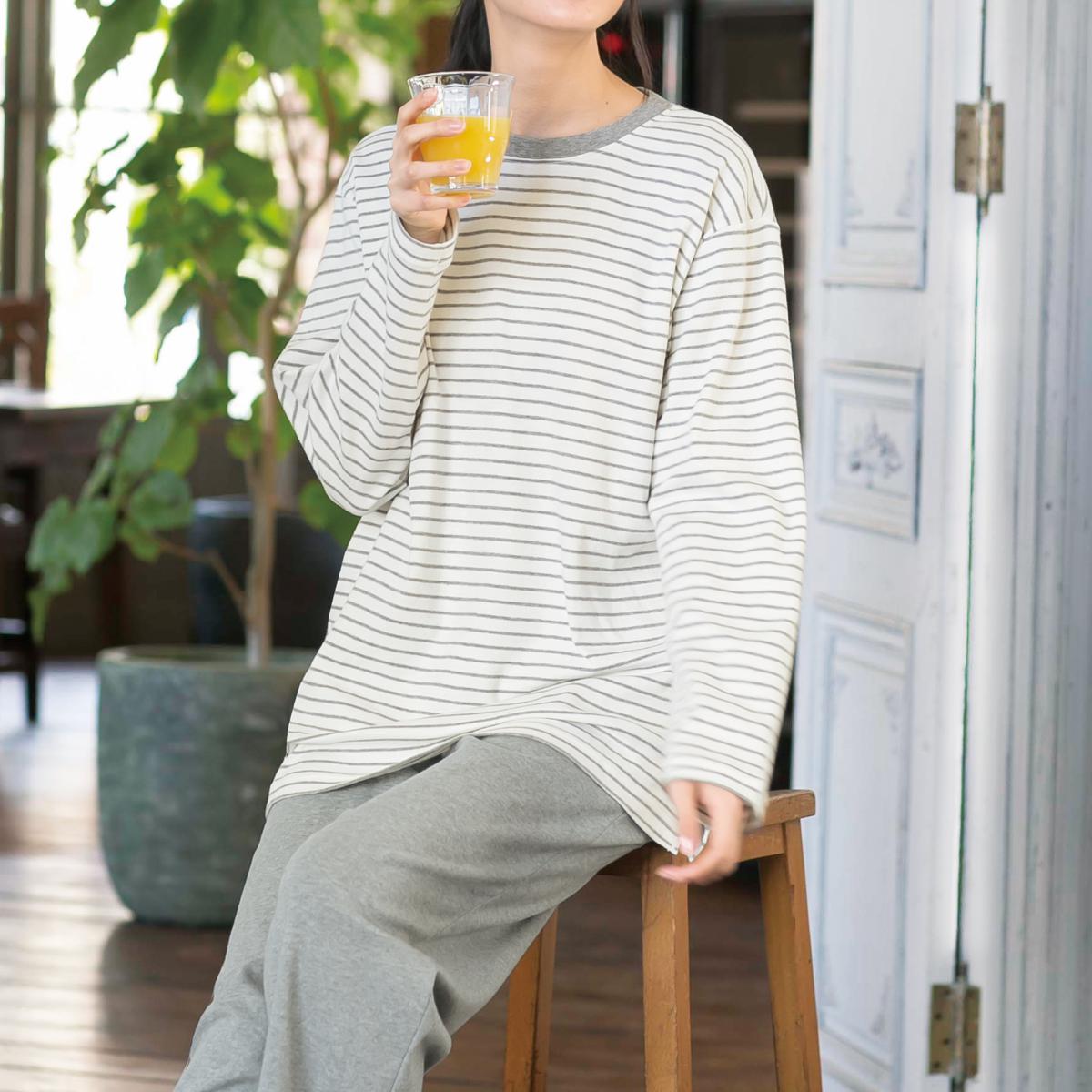 ボーダー×無地の着やすいデザインが人気の定番Tタイプパジャマ。
