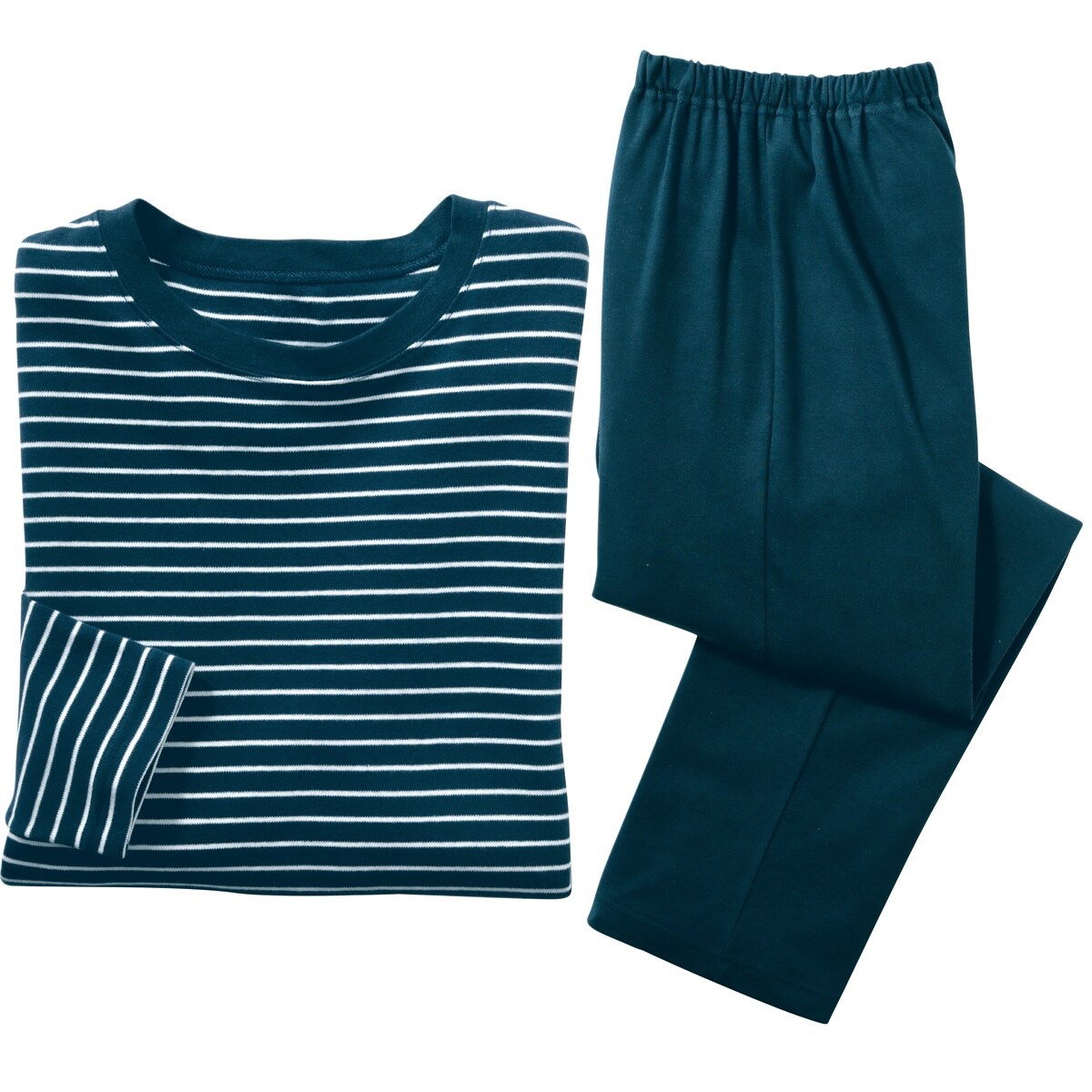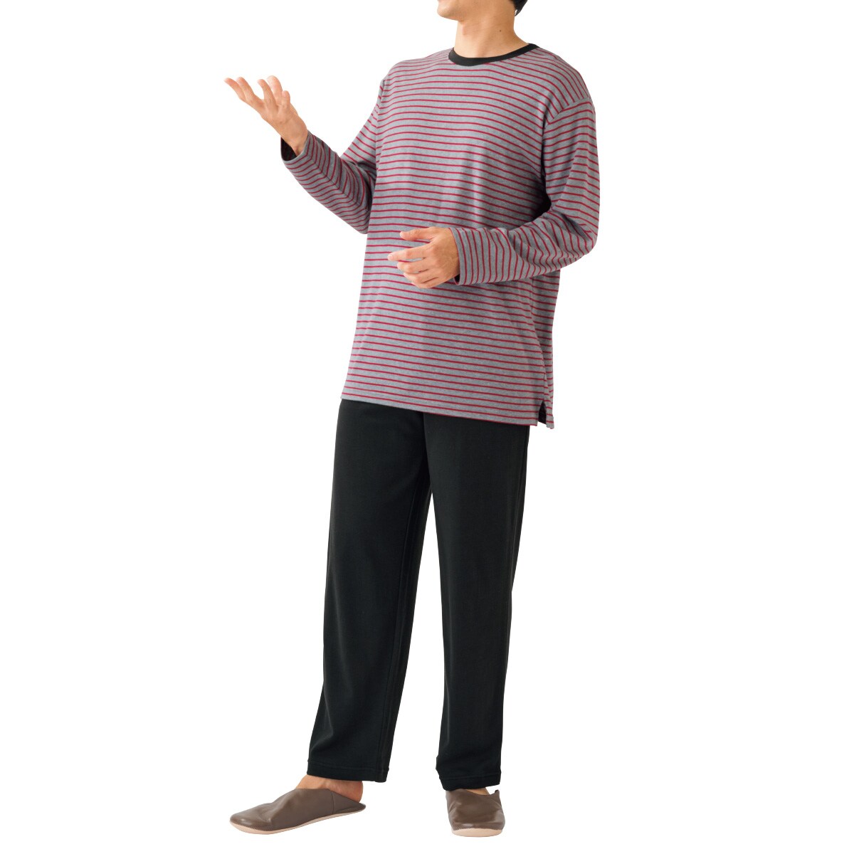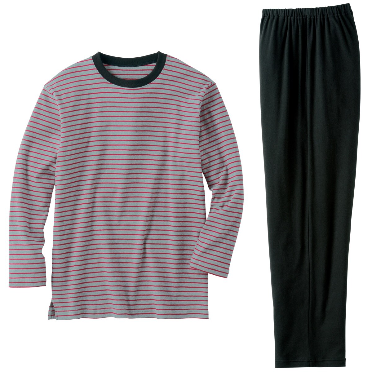 -お買い得ポイント-人気の定番Tタイプパジャマです。Sから5Lまでとサイズ豊富に揃っており、メンズだけでなくレディースにもおすすめです。-デザイン-ボーダー×無地の着やすいデザイン。-素材特徴-綿100%のスムース素材がソフトな肌あたりで、部屋着にもぴったり。