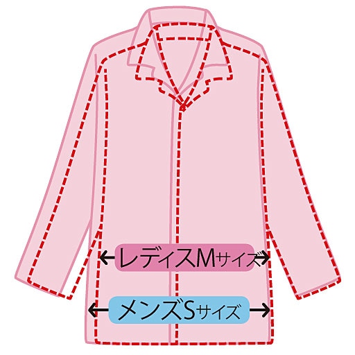 男女兼用パジャマって?メンズサイズで仕立てているので、だぼっと愛らしく着られて、ラク。ご家族お揃いで着用いただけます。女性は1つ小さめサイズを選んで。