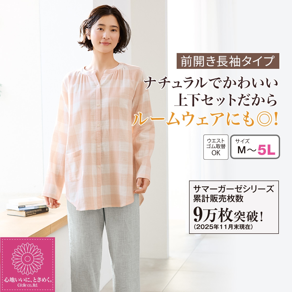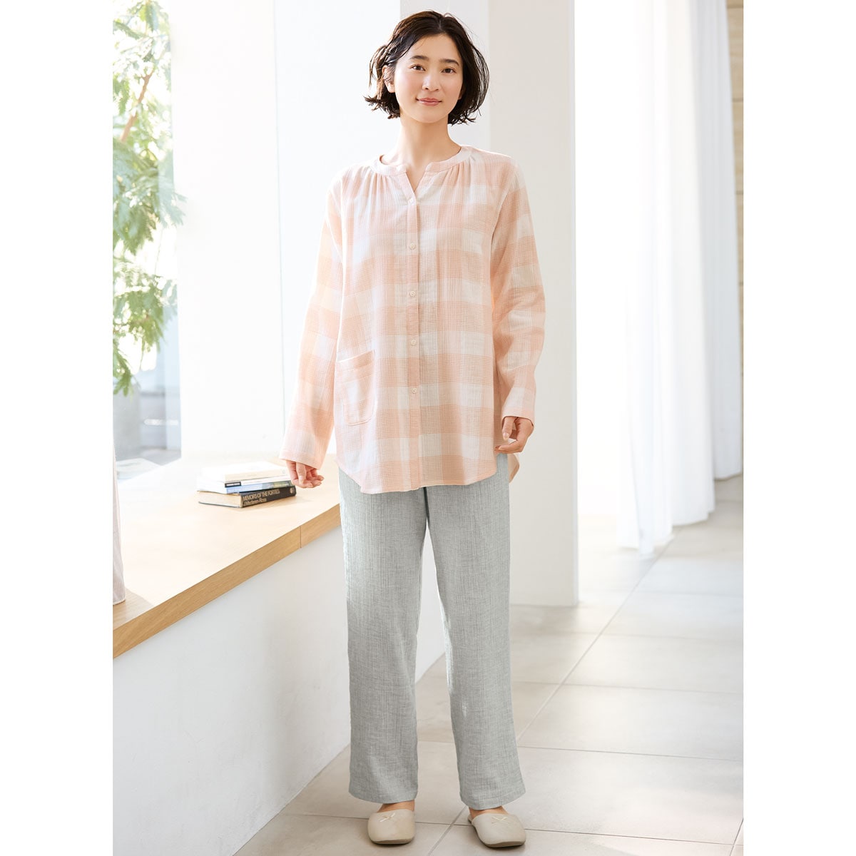 【シリーズ累計枚数9万枚突破(2025年11月末現在)】ナチュラルでかわいい上下セットだからルームウェアにも◎!ふわさらな着心地と肌ざわりがやみつきになるサマーガーゼパジャマ。(前開き長袖タイプ)ふっくらさん対応サイズplump(プランプ)もあります。