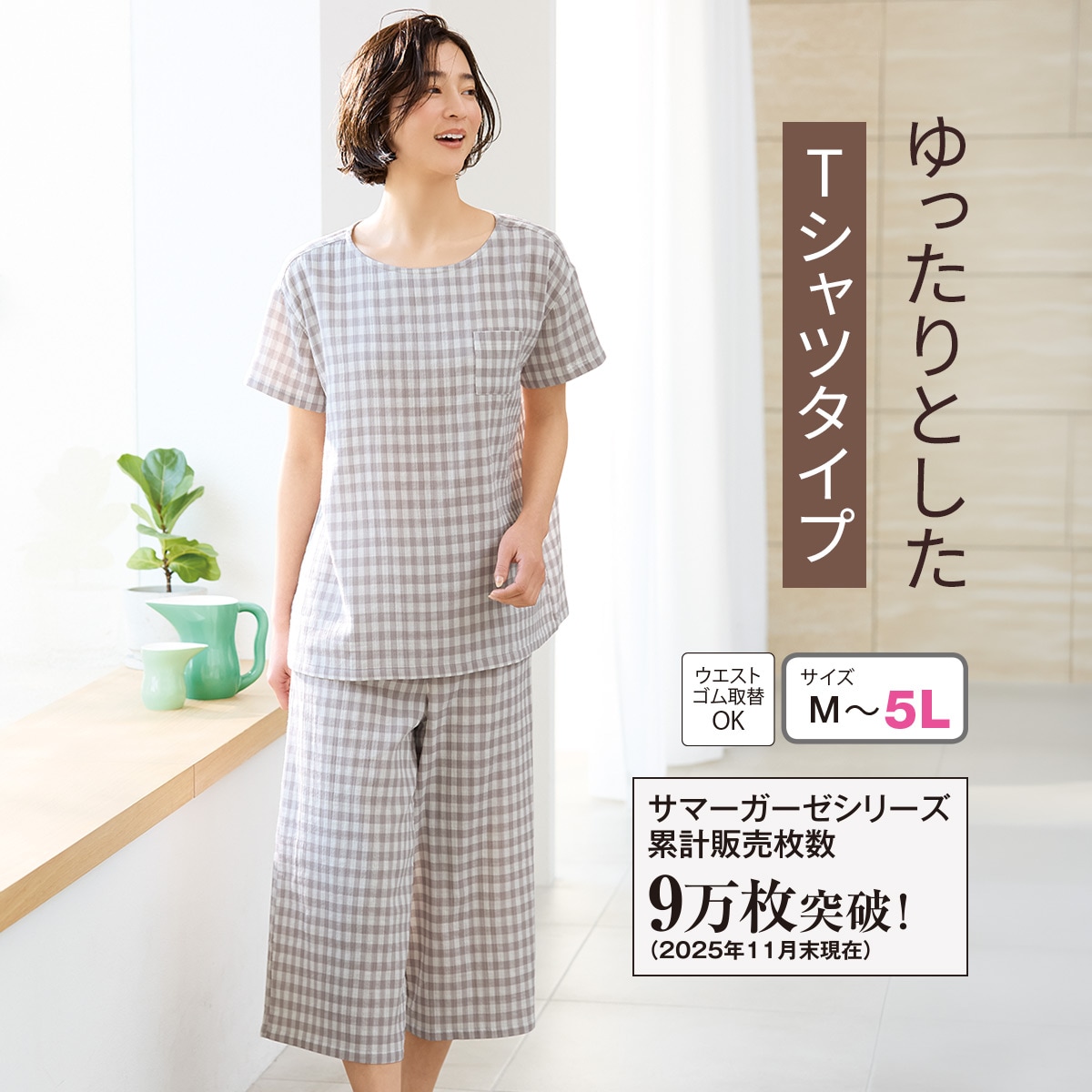 【シリーズ累計枚数9万枚突破(2025年11月末現在)】ナチュラルでかわいい上下セットだからルームウェアにも◎!ふわさらな着心地と肌ざわりがやみつきになるサマーガーゼパジャマ。(ゆったりTシャツタイプ)ふっくらさん対応サイズplump(プランプ)もあります。
