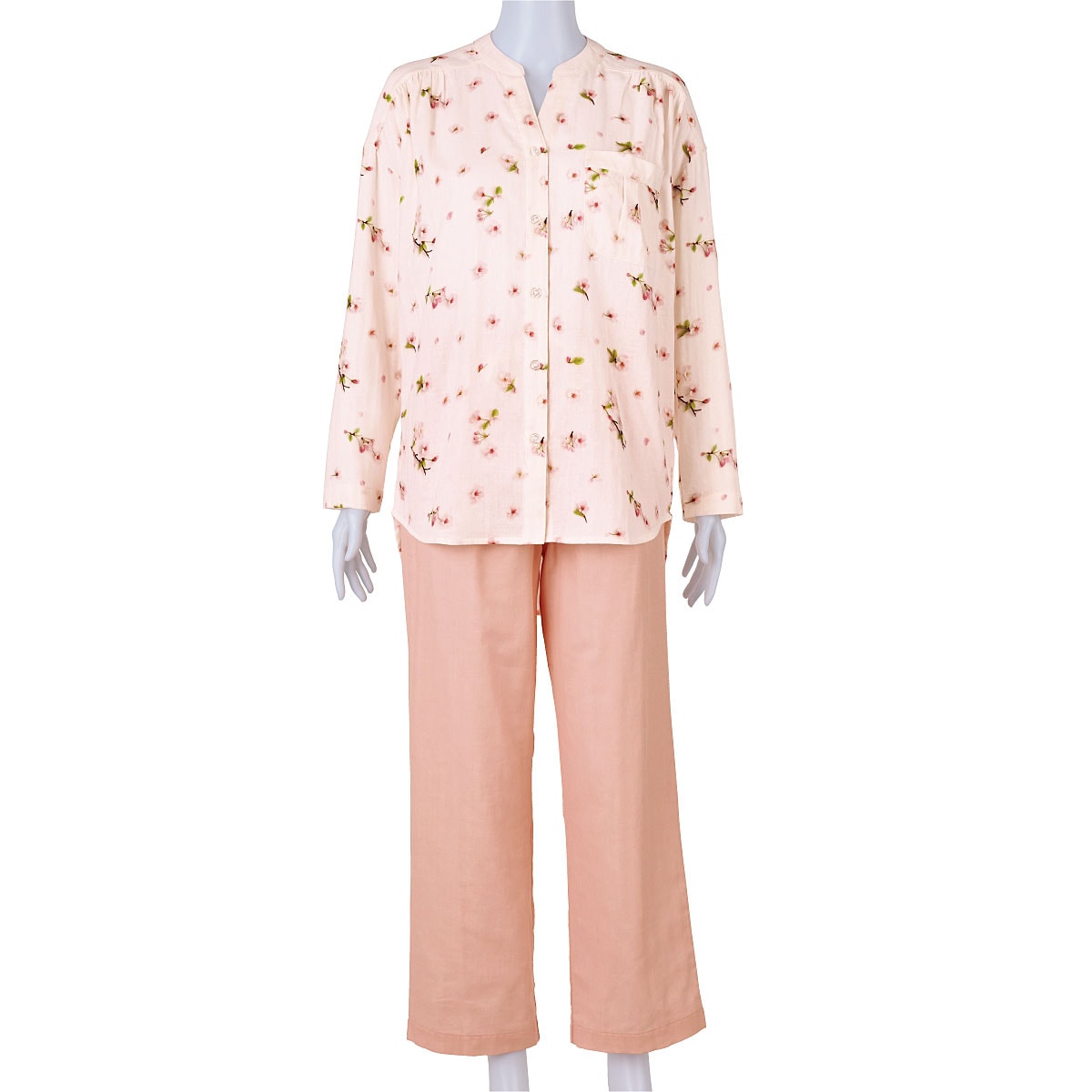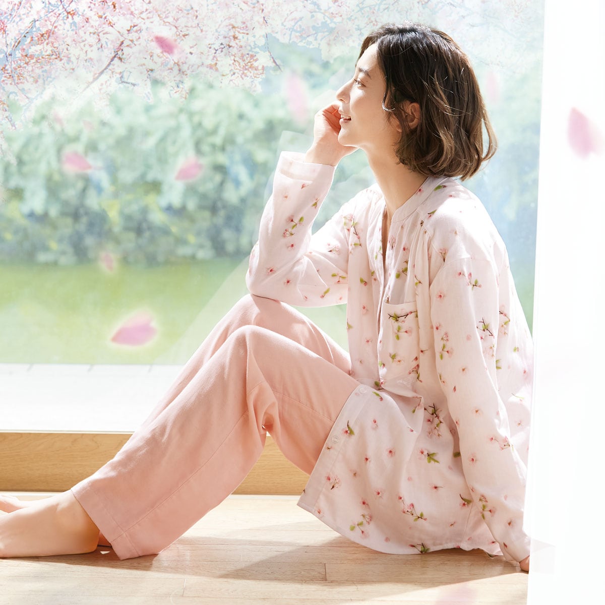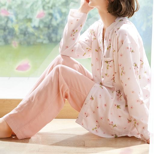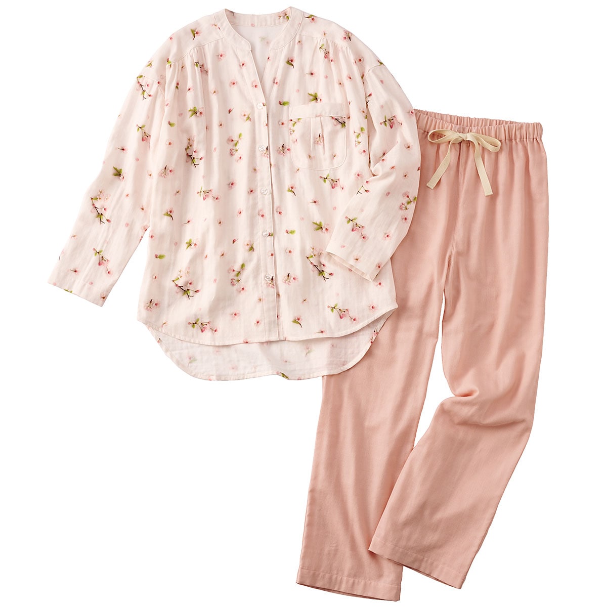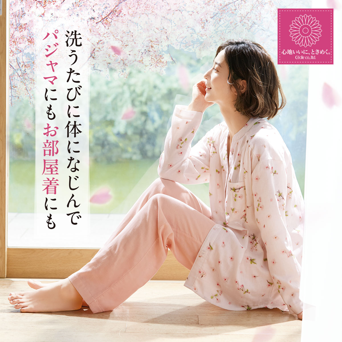 【新色:サクラ柄登場!】予定のない休日はそのまま過ごせそうな、おしゃれでこなれ感のあるデザイン。ふんわり軽くてやわらかい、コットン100%ダブルガーゼ素材のパジャマ。ふっくらさん対応サイズplump(プランプ)もあります。