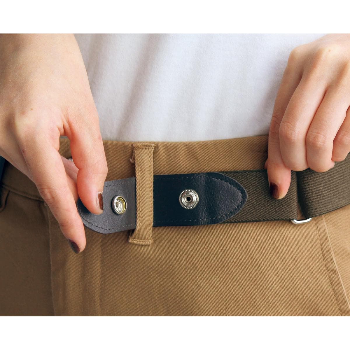 -お買い得ポイント-ベルトループに通してボタンを留めれば着用完了。ベルトを外さず、ボトムの着脱が可能で、一度使ったら手放せなくなる楽ちんさ!-デザイン-調節金具付きでサイズ調節もスムーズ。コーディネートになじむ豊富なカラー展開も魅力です。-素材特徴-ぐ~んと伸びるゴム仕様。