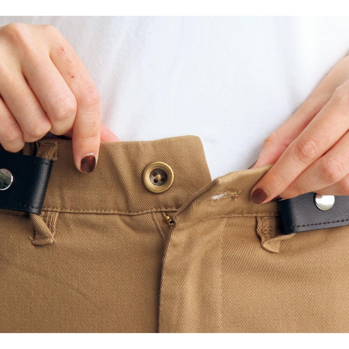 POINT①ベルトをしたままパンツが脱ぎはきできるから超便利。サイズ調整もかんたん!