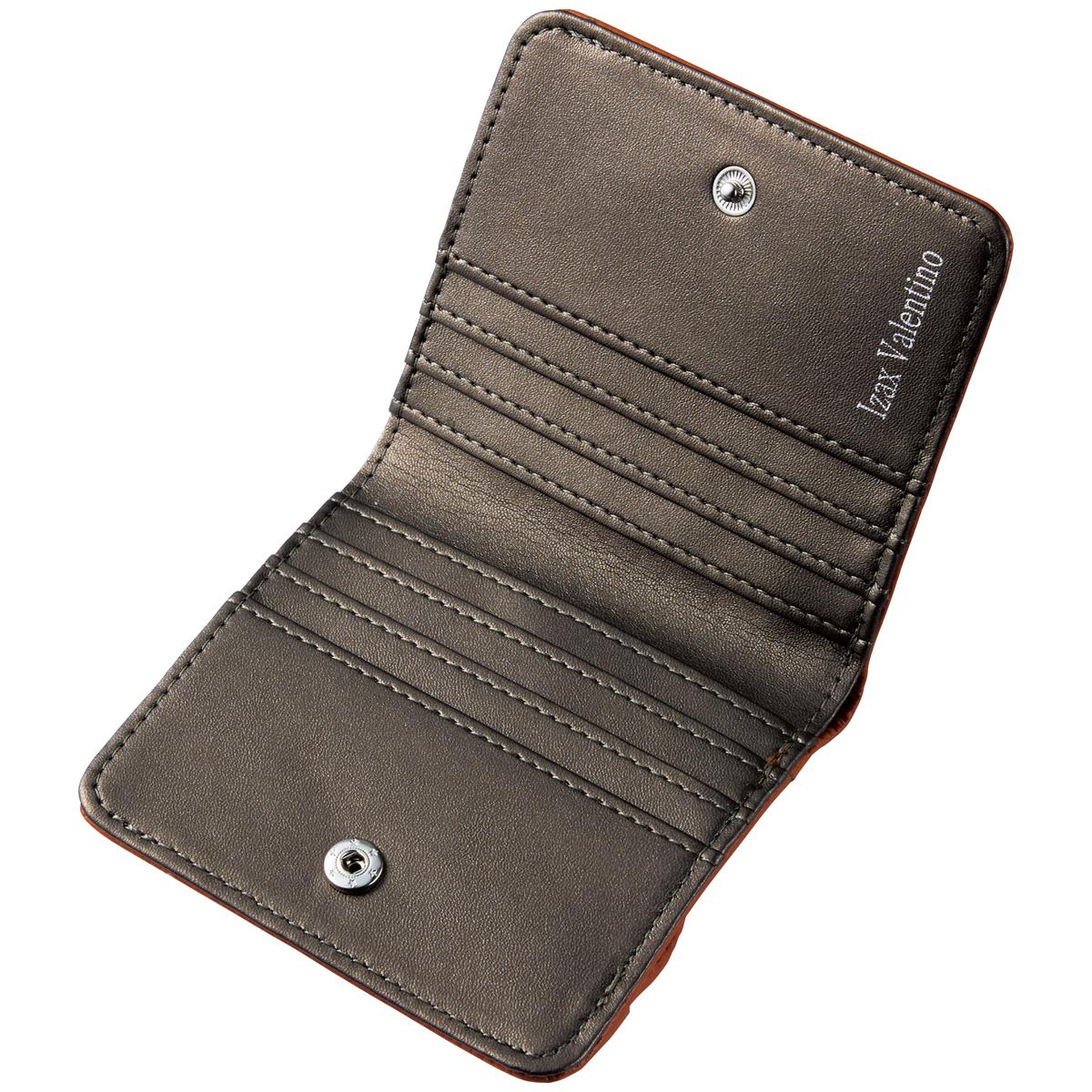 ■材質/[外側]牛革 [内側]合成皮革、ポリエステル ■サイズ(約cm)/縦9×横10×厚み2.5 ■重量/約70g ■仕様/[開閉]ホック式[内側]札入れ×1、カード入れ×6、オープンポケット×2 [外側]ホック式小銭入れ×1●中国製