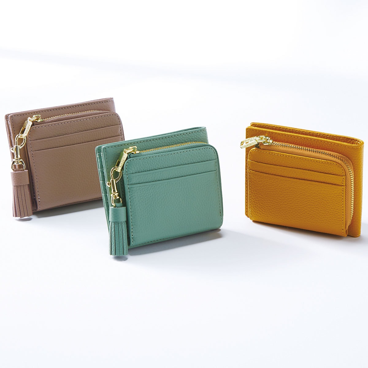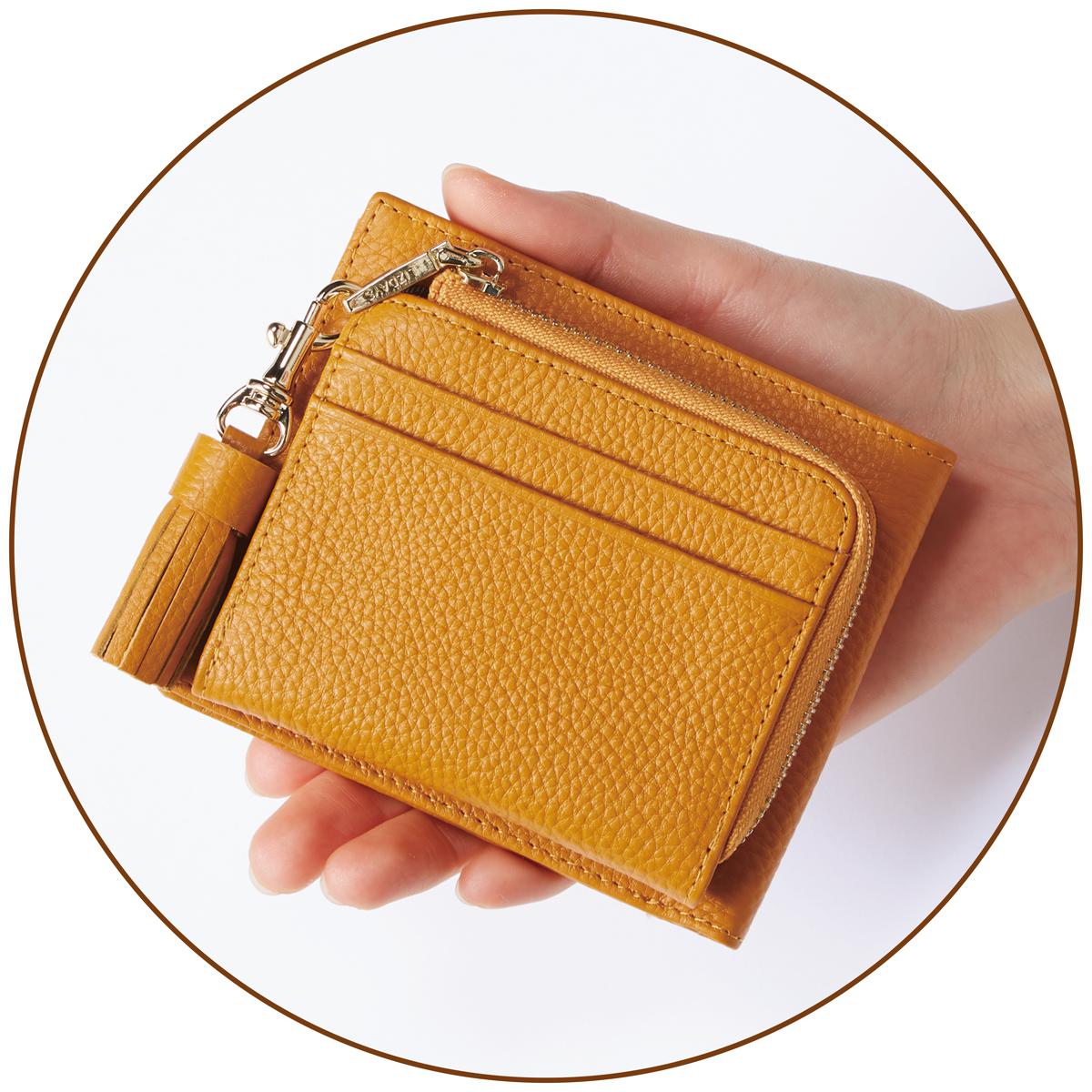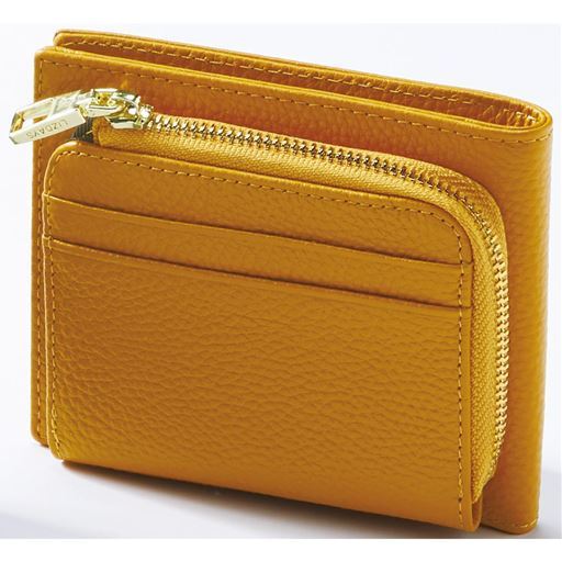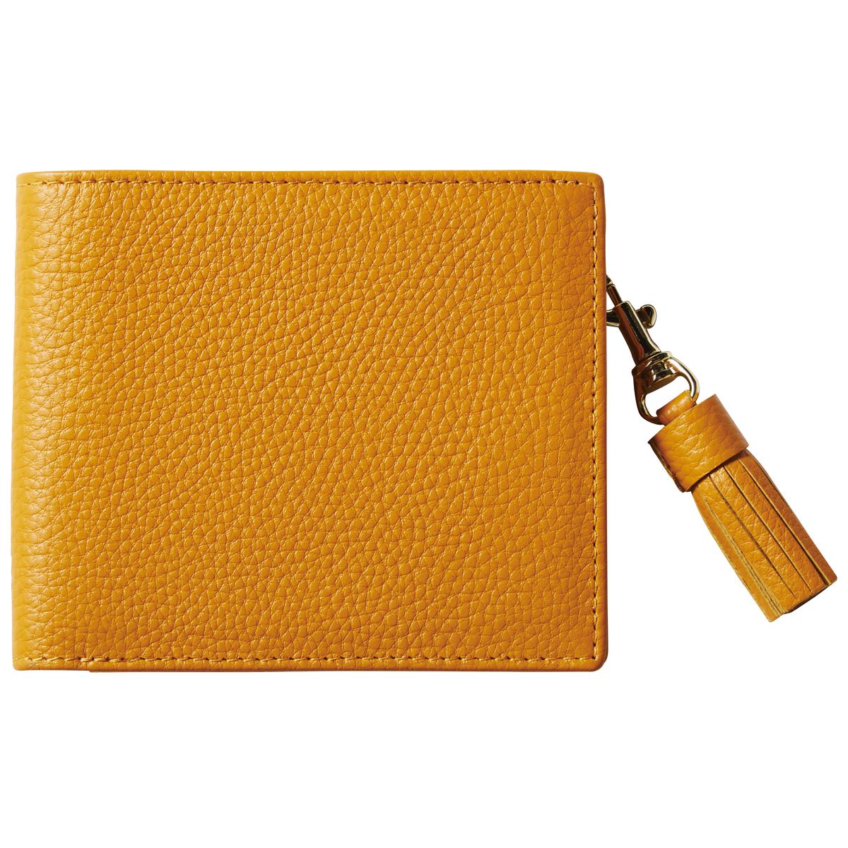 • 出し入れスムーズな本革二つ折り財布 | マスタード