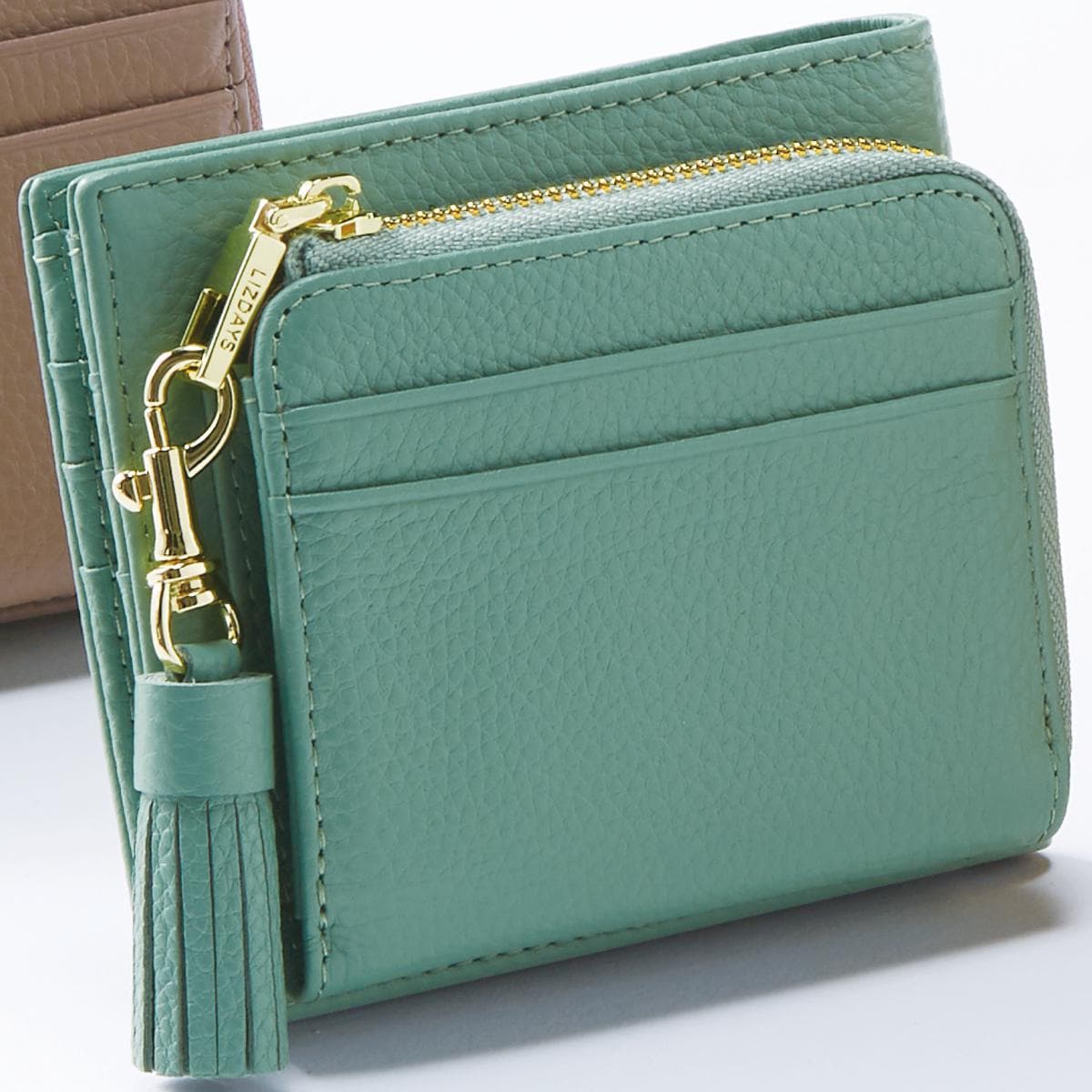 • 出し入れスムーズな本革二つ折り財布 | ミントグリーン