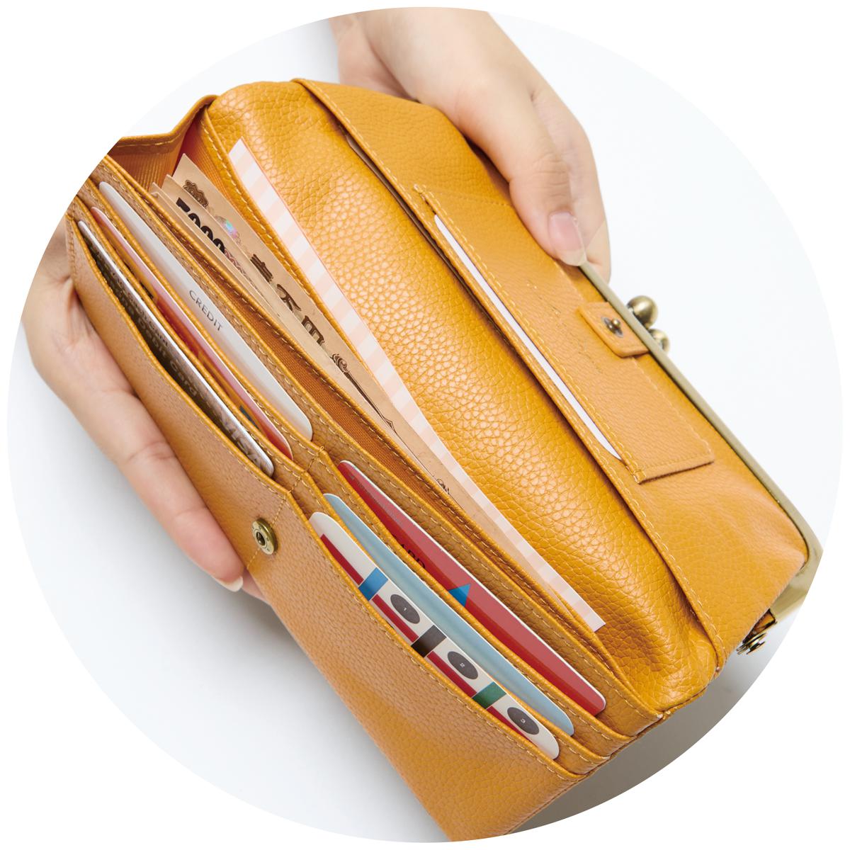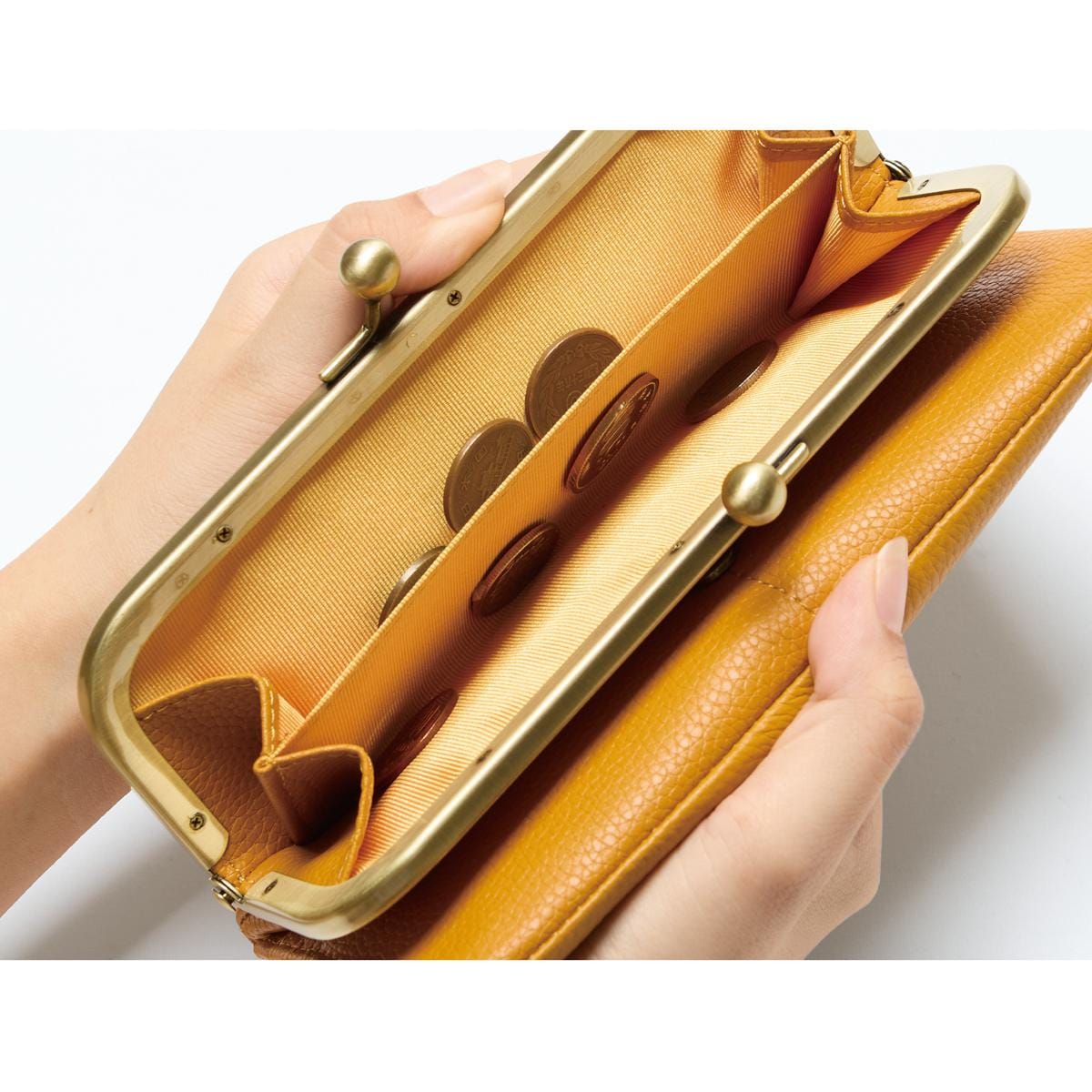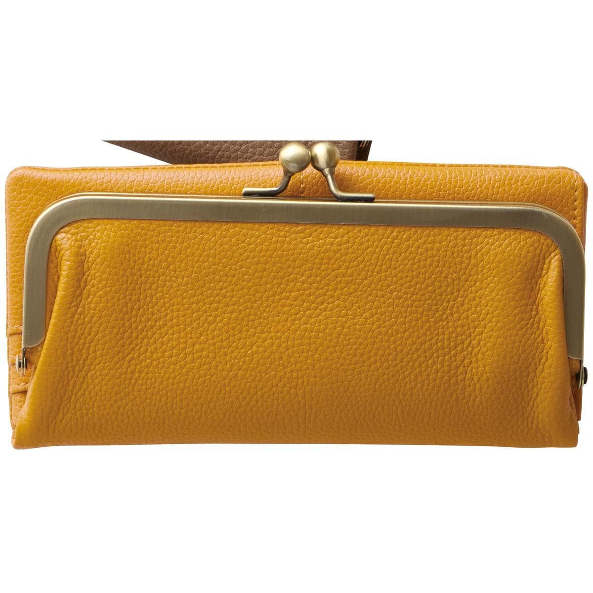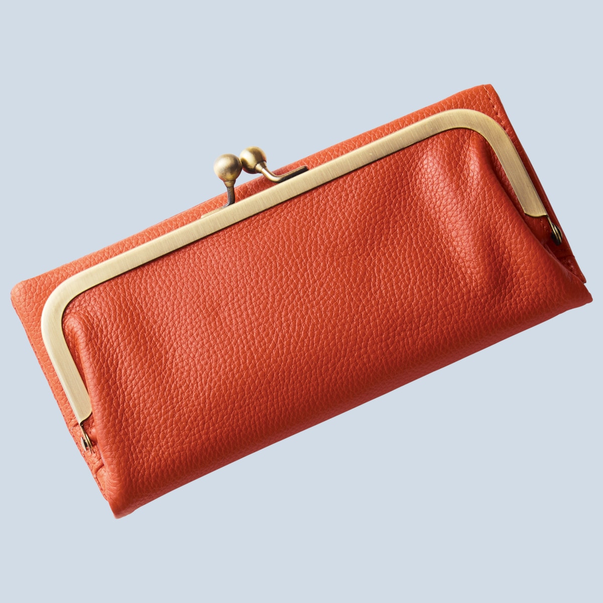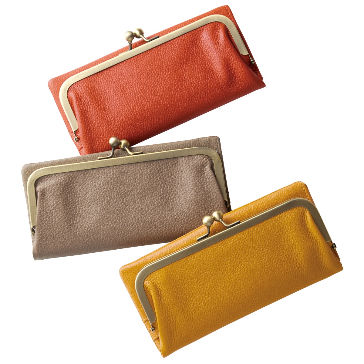 -お買い得ポイント-薄型なのに、大容量!手触りが良くレトロ可愛いがま口長財布。ガバっと開いて、中も見やすい。-デザイン-カードやお札、チケットなどを仕分けできる内側ポケット。小銭や小物収納として使えるがま口。-素材特徴-上質感のある牛革を使用し、傷が目立ちにくいシボ入り。