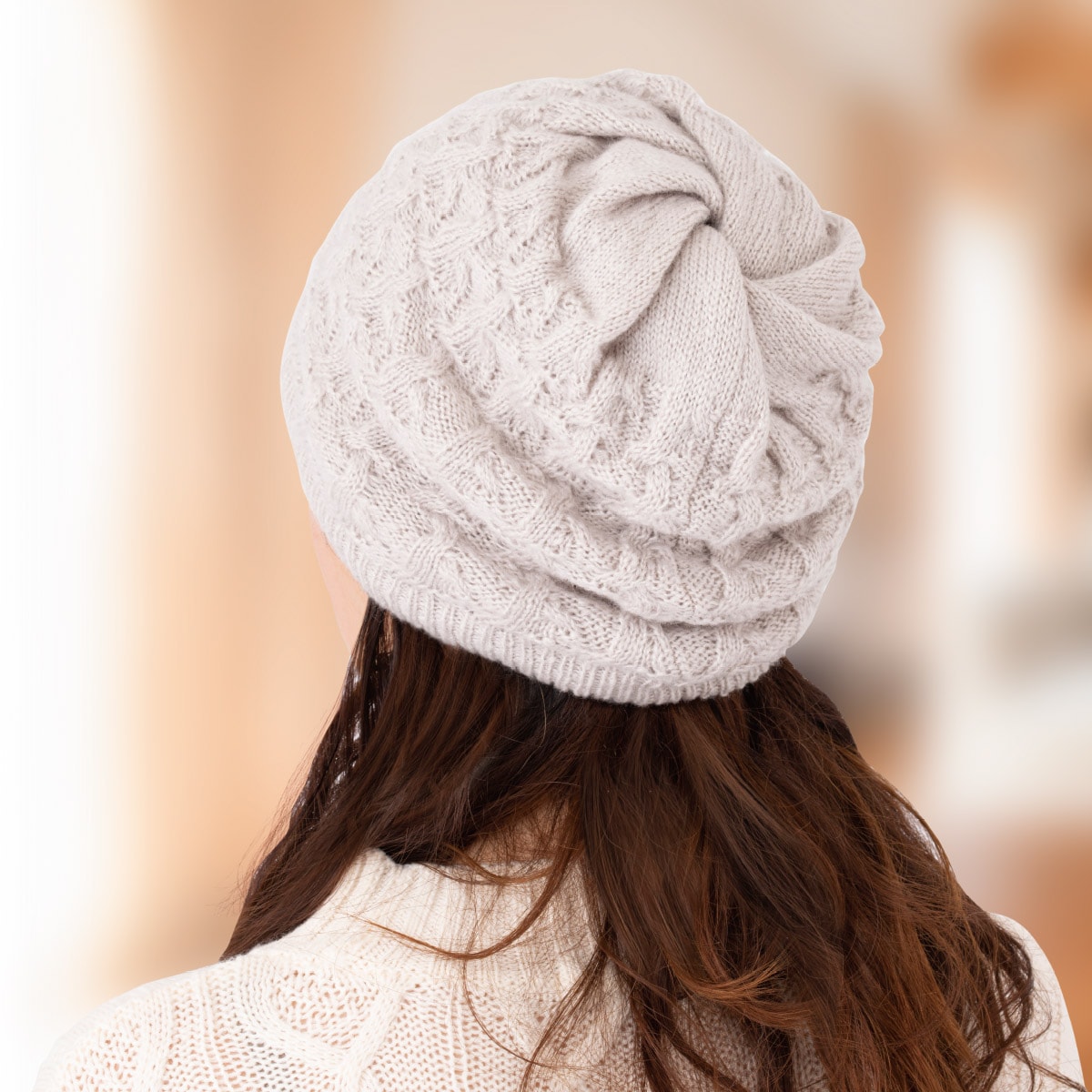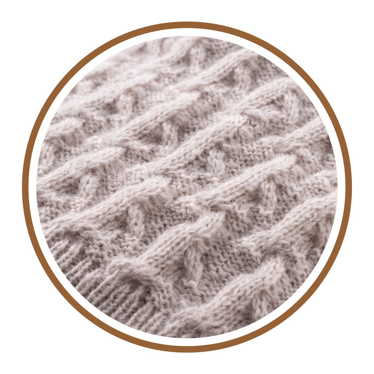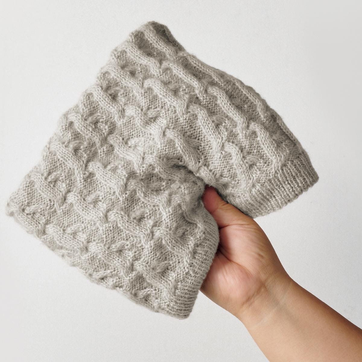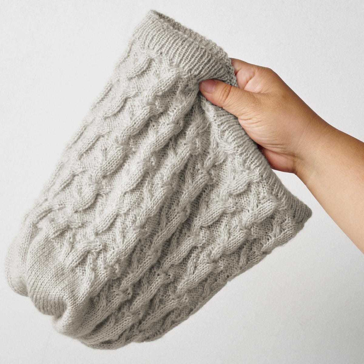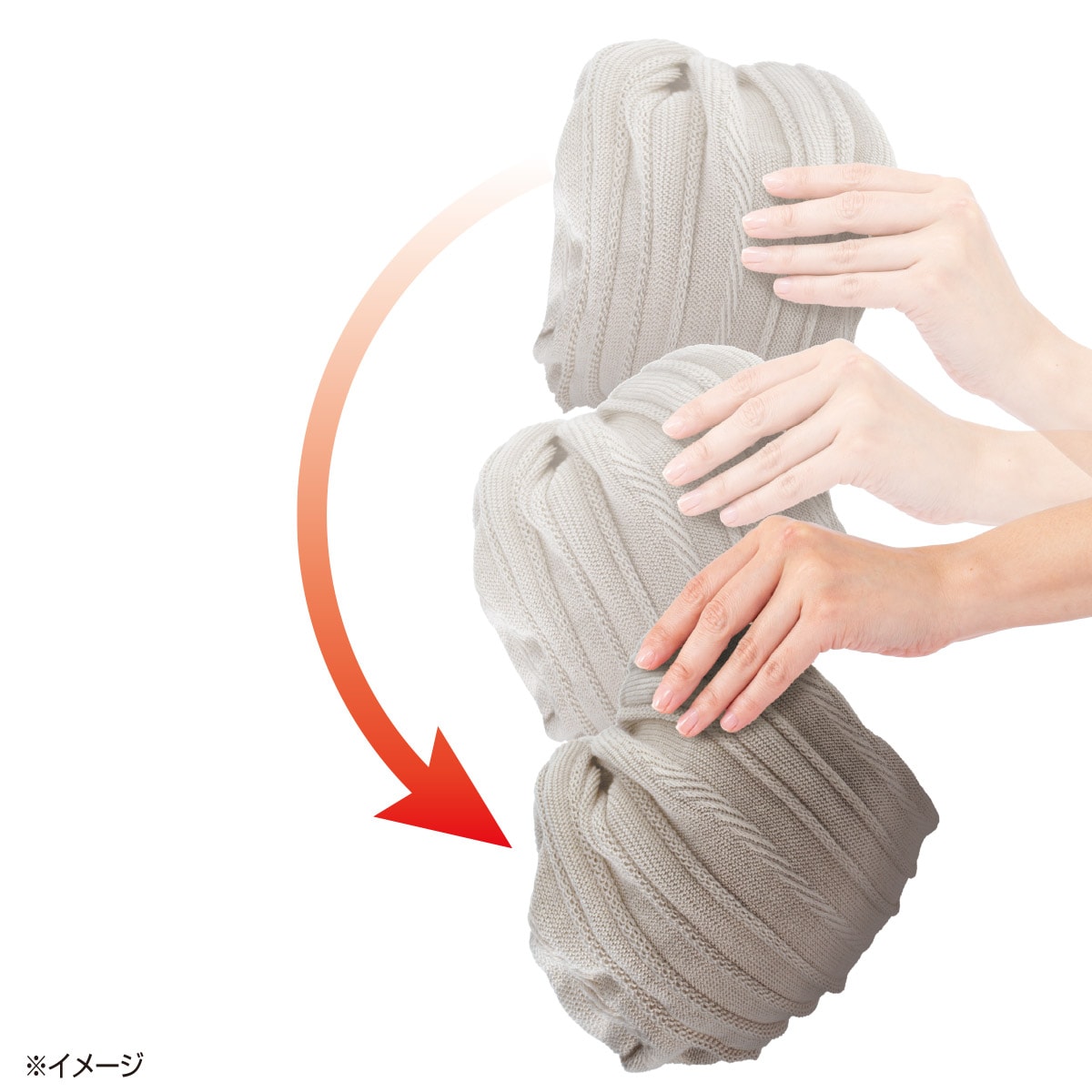端を持って振ると、頭頂部が閉じてネックカバーから帽子に早変わり!服装に合わせて使える!無地とケーブル編みのリバーシブル。伸縮性があり、メイクしたままでも着脱できます。-素材特性-ふわっふわのやわらかな肌触り。-こだわりPOINT-帽子で着用時、頭頂部は渦巻き状に閉じるため、隙間ができません。