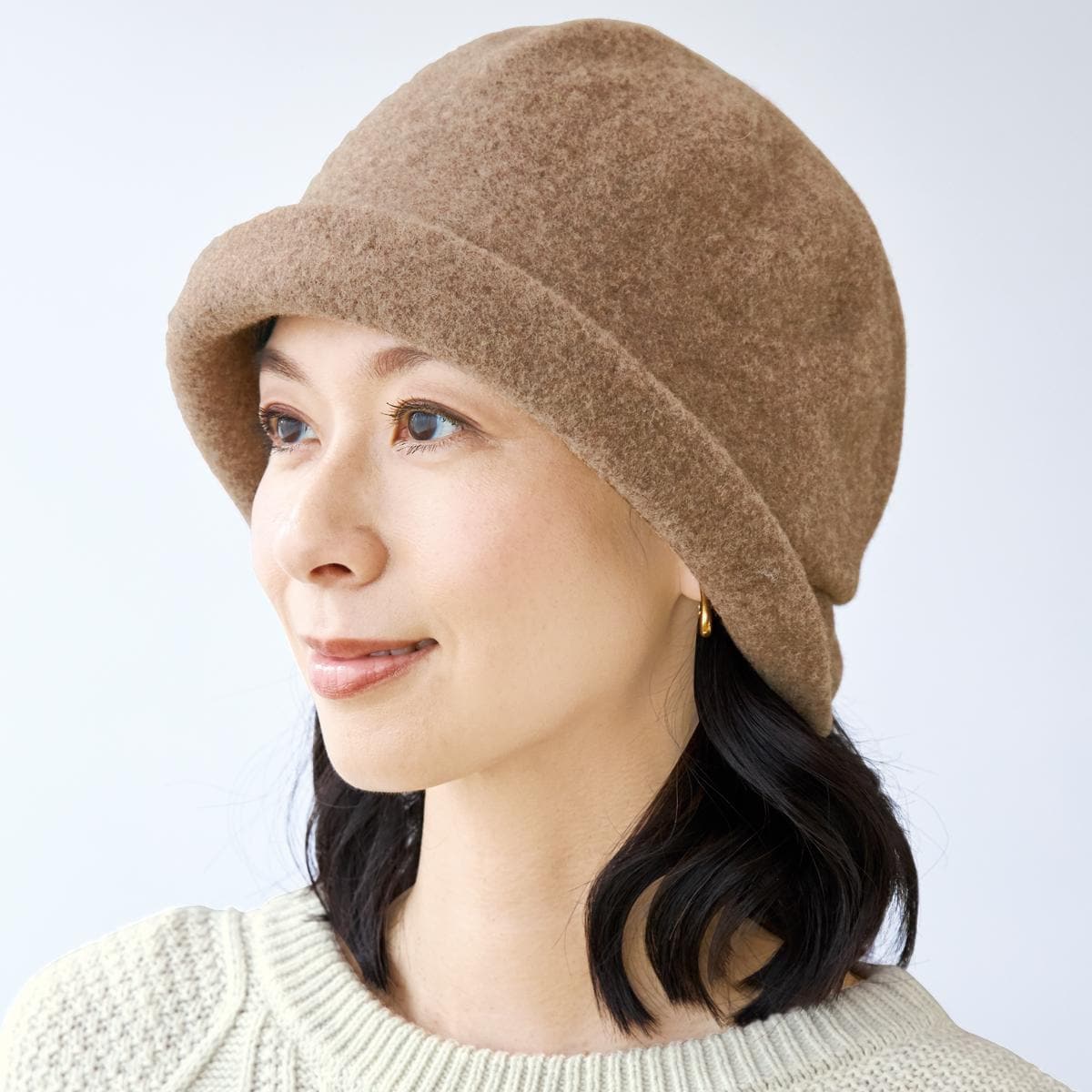 風を通しにくい目の詰まった圧縮ウール混ニットで軽くて暖か。自然な丸みを出したフォルムは、頭の形がきれいに見え、角度にこだわったつばでスッピン隠しにも。ウール混素材なのに手洗いOKです。【UVカット率約99%】【UPF50+】【近赤外線カット率(つば部分)】・チャコールグレー約99%・ライトブラウン約95%・ライトグレー約98%【1級遮光(つば部分)】【丸洗いOK】