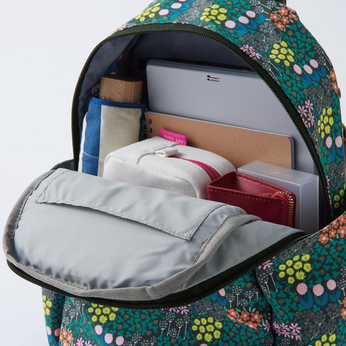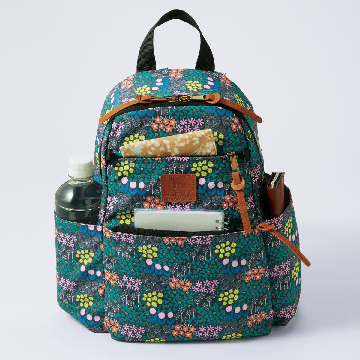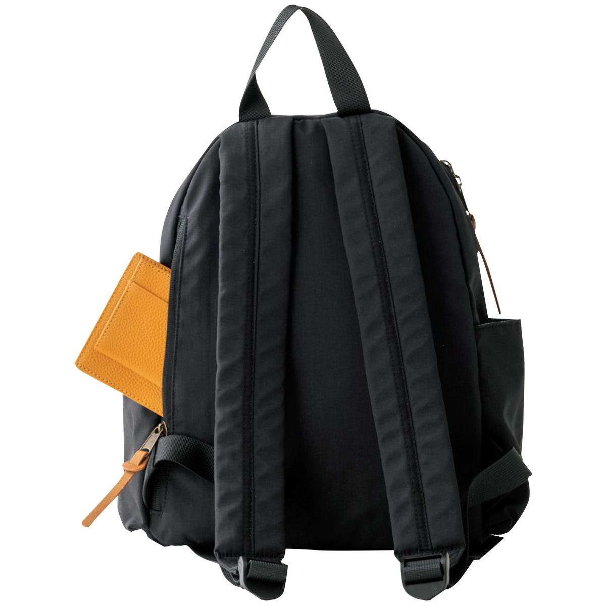 B5サイズがすっぽり収まる大きさのミニリュック。ジム通いや旅行にもおすすめ。ーデザインーしっかりとしたマチ幅と10個のポケットで収納力抜群。内ポケットは高めに付けて出し入れラク。脇ポケットも充実していて、500mlのペットボトルを収納できる。ー素材特性ーはっ水加工で多少の雨でも安心。