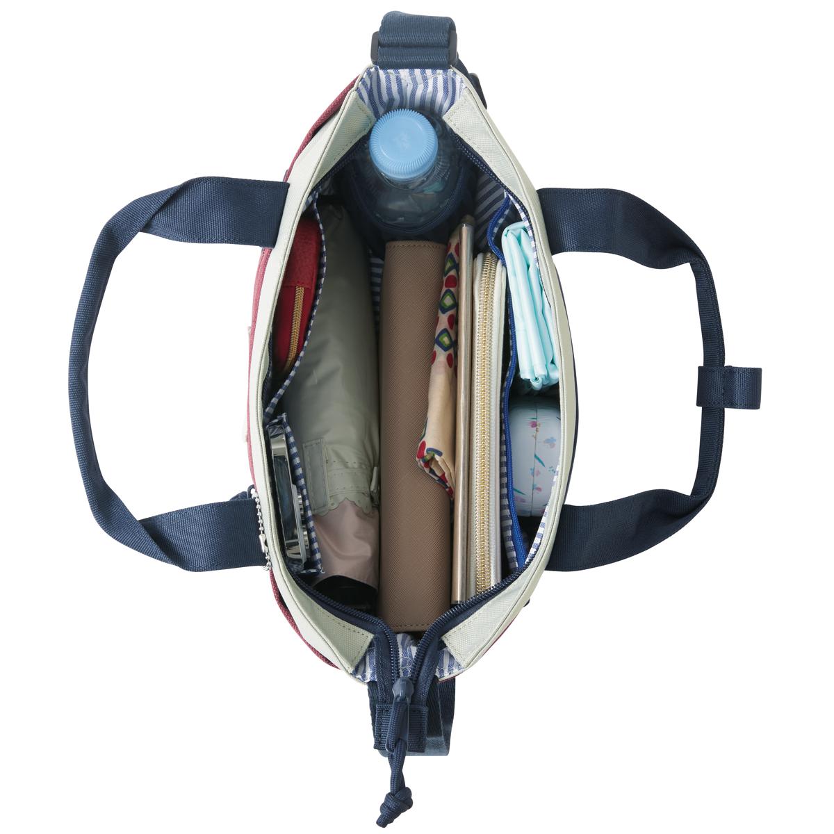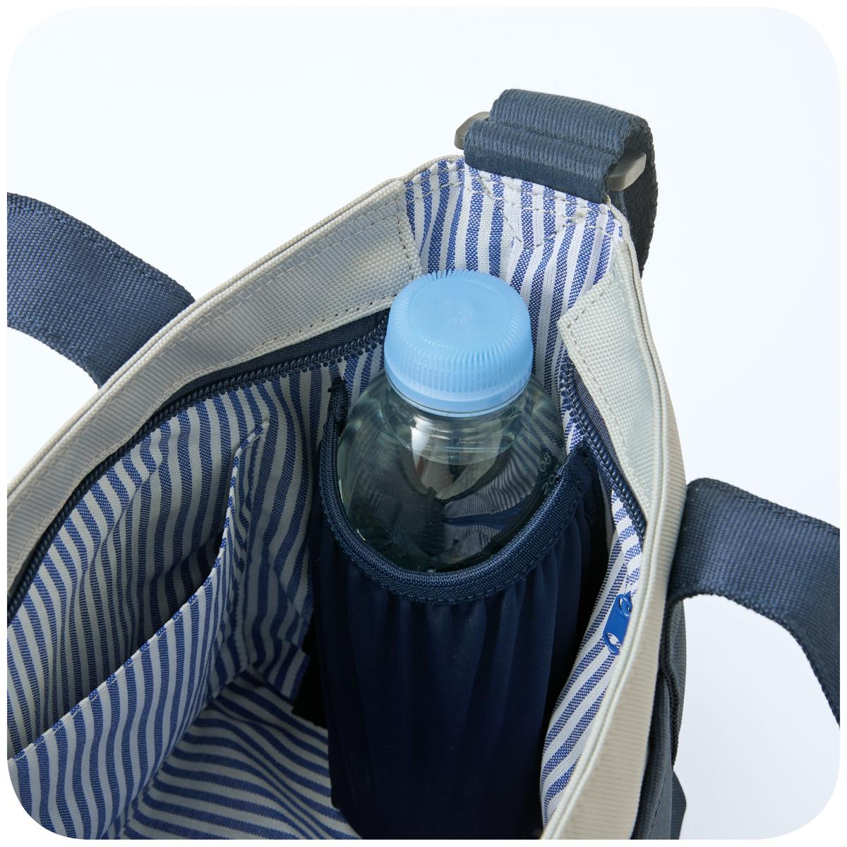 A5サイズが入るメイン収納部や、さまざまな大きさの荷物に対応できるポケットが便利。エルクの可愛いチャームがリフレクターにもなってアクセントに。-こだわりPOINT-左右真ん中の3ケ所にオープンポケット付きの背面。大事な物を収納できるファスナー付き前面&両サイドポケット。マチ付きで荷物が自立。ガバッと開いて取り出しやすい整頓できる10ポケット。-素材特性-250mlサイズのペットボトルホルダーは伸縮性があり出し入れラク。