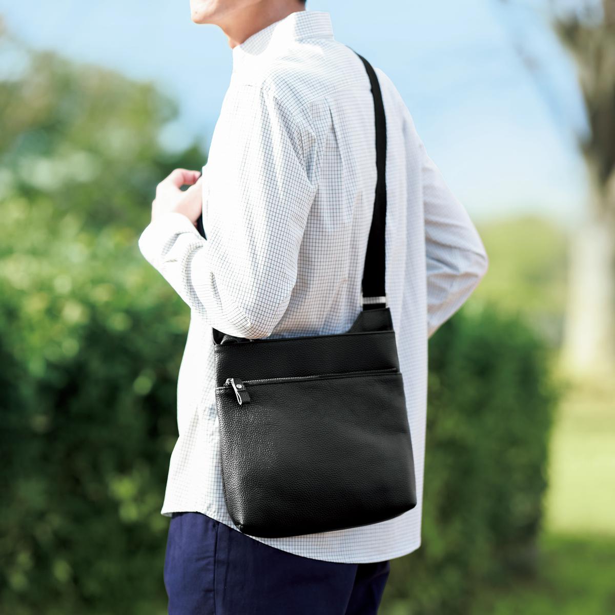 ■牛革●サイズ(約cm):縦25×横25×マチ6/ショルダー長さ76~138cm(調節可)/ショルダーベルト取り外し不可●仕様:開閉ファスナー式、内ファスナーポケット×1、オープンポケット×2、前ファスナーポケット×1●重量:約450g●日本製【日本製】【牛革】※天然皮革は素材の特性上、若干の浸水やシワおよび色落ちが見られることがあります。ご了承ください。※ブランド商品につき、デザイン・混率など仕様の一部が予告なく変更される場合があります