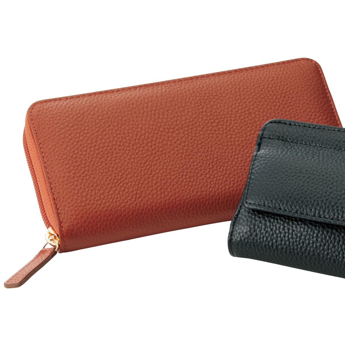 「財布が張る」にかけて、縁起がよいとされる春財布。シュリンクレザーは細かなシボ(シワ模様)があるため、キズによる凹凸も溶け込みやすい特徴があります。