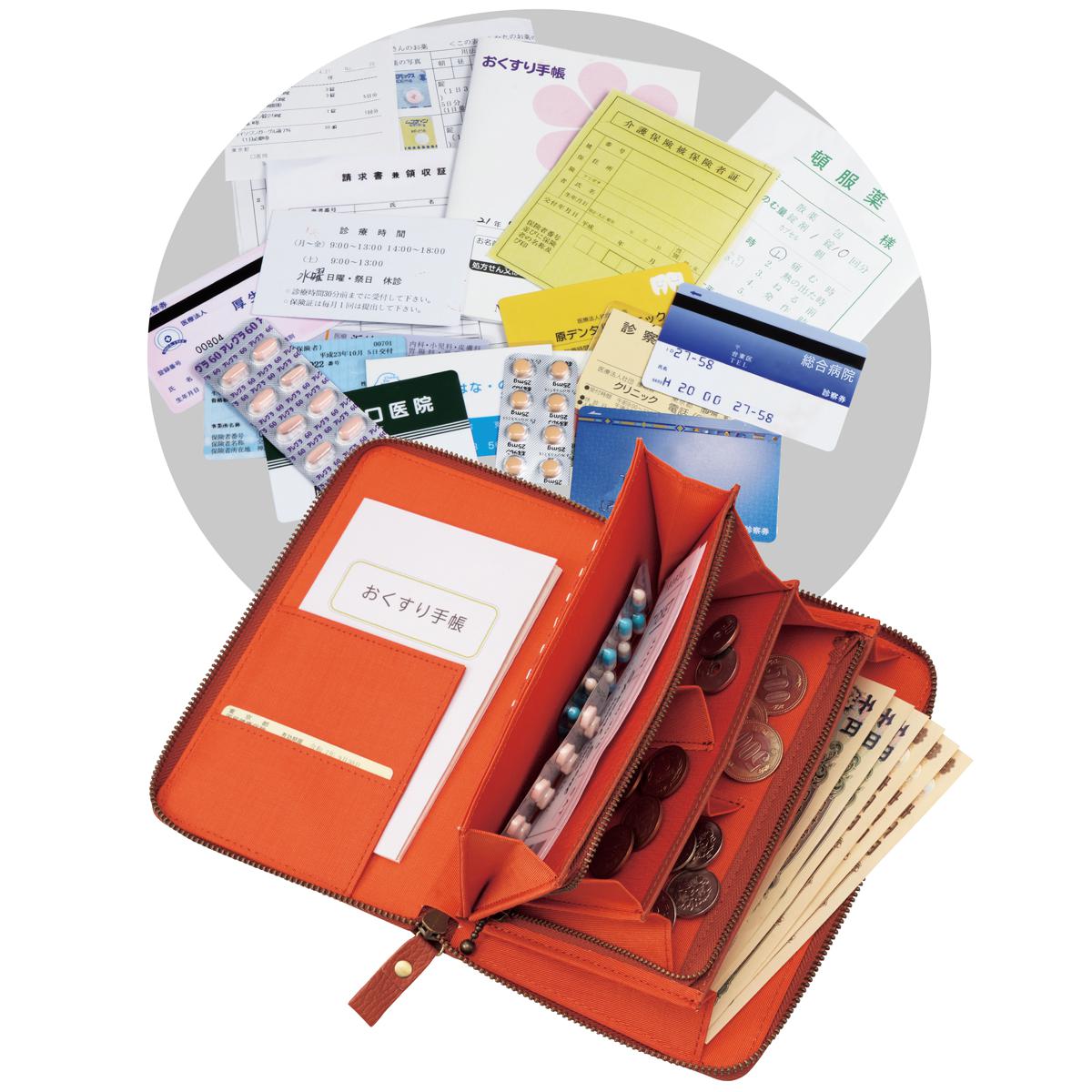 -お買い得ポイント-薬の処方箋や保険証、カードやお金もすっきり収納。中身が見やすく迷わず取り出せるから、通院の必需品をまとめて管理できます。-デザイン-カードを入れるポケット×11、診察券やクレジットカードなどをたっぷり収納できます。処方箋などがすぐに取り出せる便利な後ろポケット付き。-素材特徴-表面はシボ加工のシュリンクレザー。細かなシボ(シワ模様)があるため、キズによる凹凸も溶け込みやすい特徴があります。
