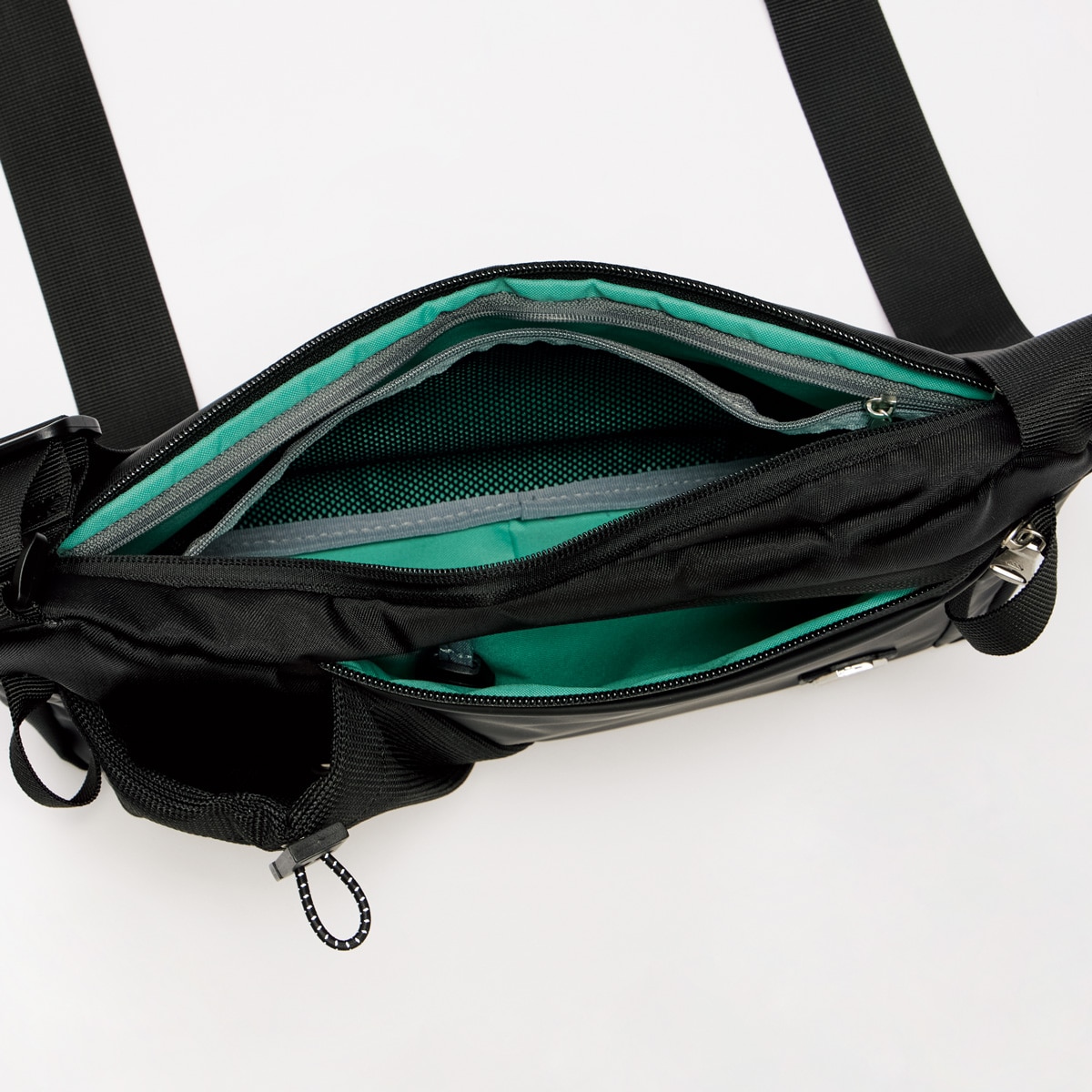 -お買い得ポイント-アウトドアブランドの本気が詰まったはっ水バッグ。コンパクトなのに驚きの収納力で街歩きから旅先まで活躍します。-デザイン-創業地にあるエメラルド湖に着想した鮮やかな緑の内装で中が見やすい。ショルダーバッグはA5判が収まる容量。ボトルを外ポケットに入れると、中にゆとりが生まれます。ボディバッグは大きく開くファスナーで中が見やすい設計。B5が入る収納力。-素材特徴-はっ水加工で急な雨も安心。