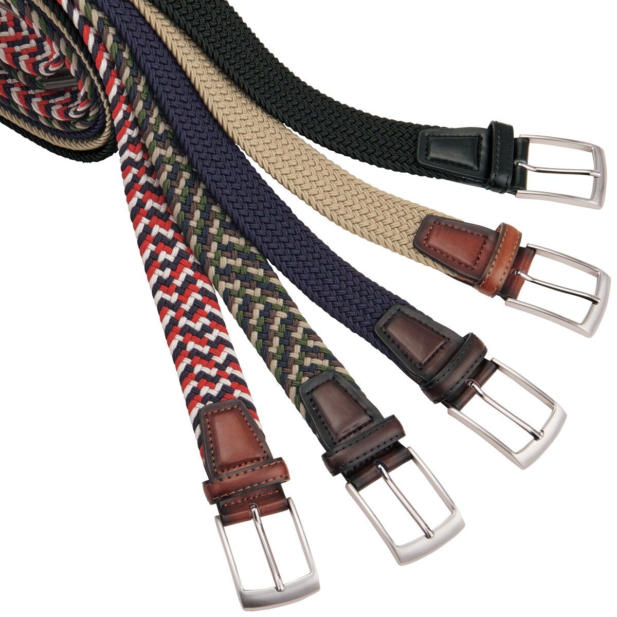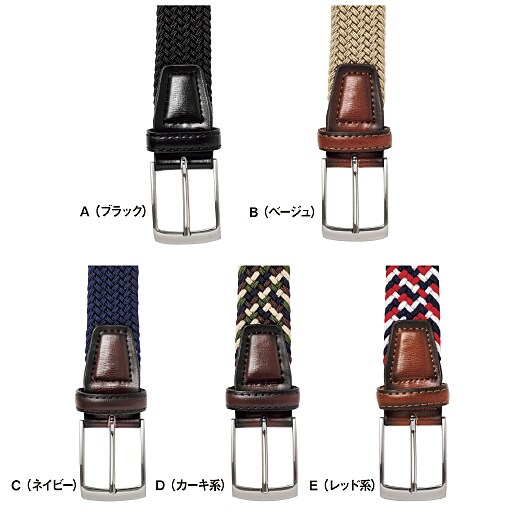 のび~るベルト!メッシュ素材で着用感も良好!(上から)A(ブラック)、B(ベージュ)、C(ネイビー)、D(カーキ系)、E(レッド系)