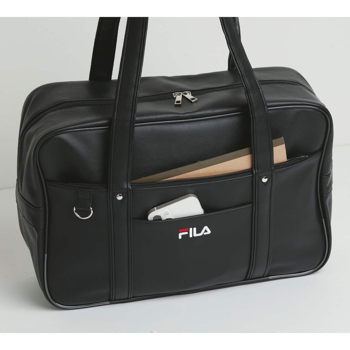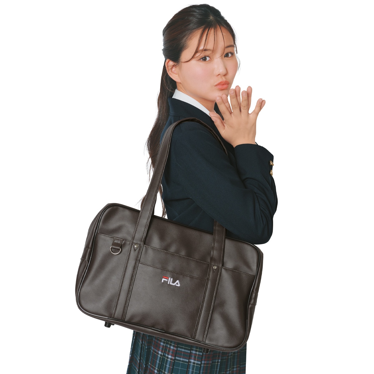 【FILA】程よく艶感のある素材で上品さがあるスクールバッグ。ストラップフックもあるので、推し活のストラップを付けてアピールするのも◎