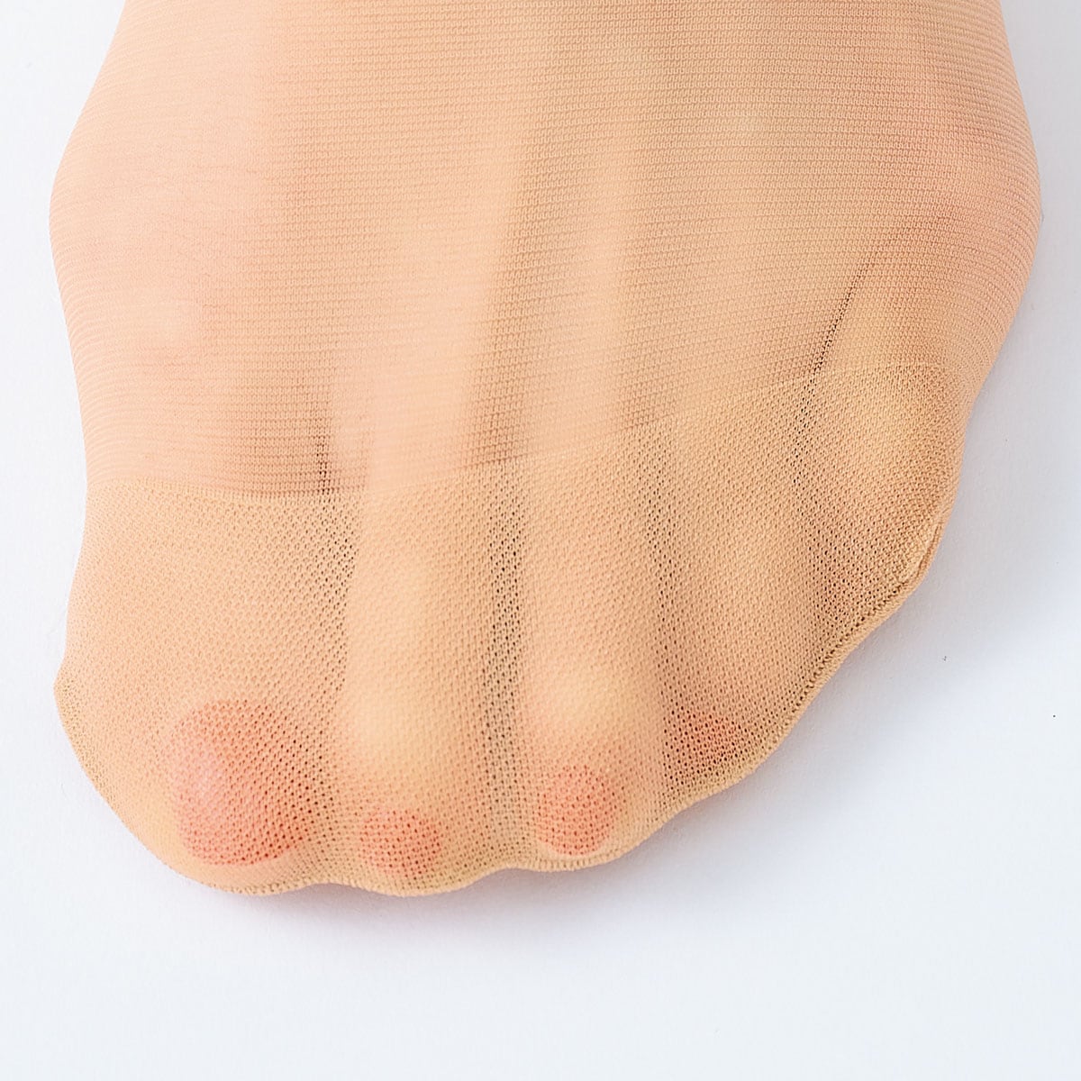 ■ナイロン・ポリウレタン レッグ部:SCY(約19デニール)と15デニールナイロン糸交互編み●商品は1足ずつ個別に包装しています●セット仕上●針数384本●日本製【つま先メッシュ補強】 【生地感/さらり透明感】 【サポート感/しっかり】 【同色5足組】 【静電気防止加工】