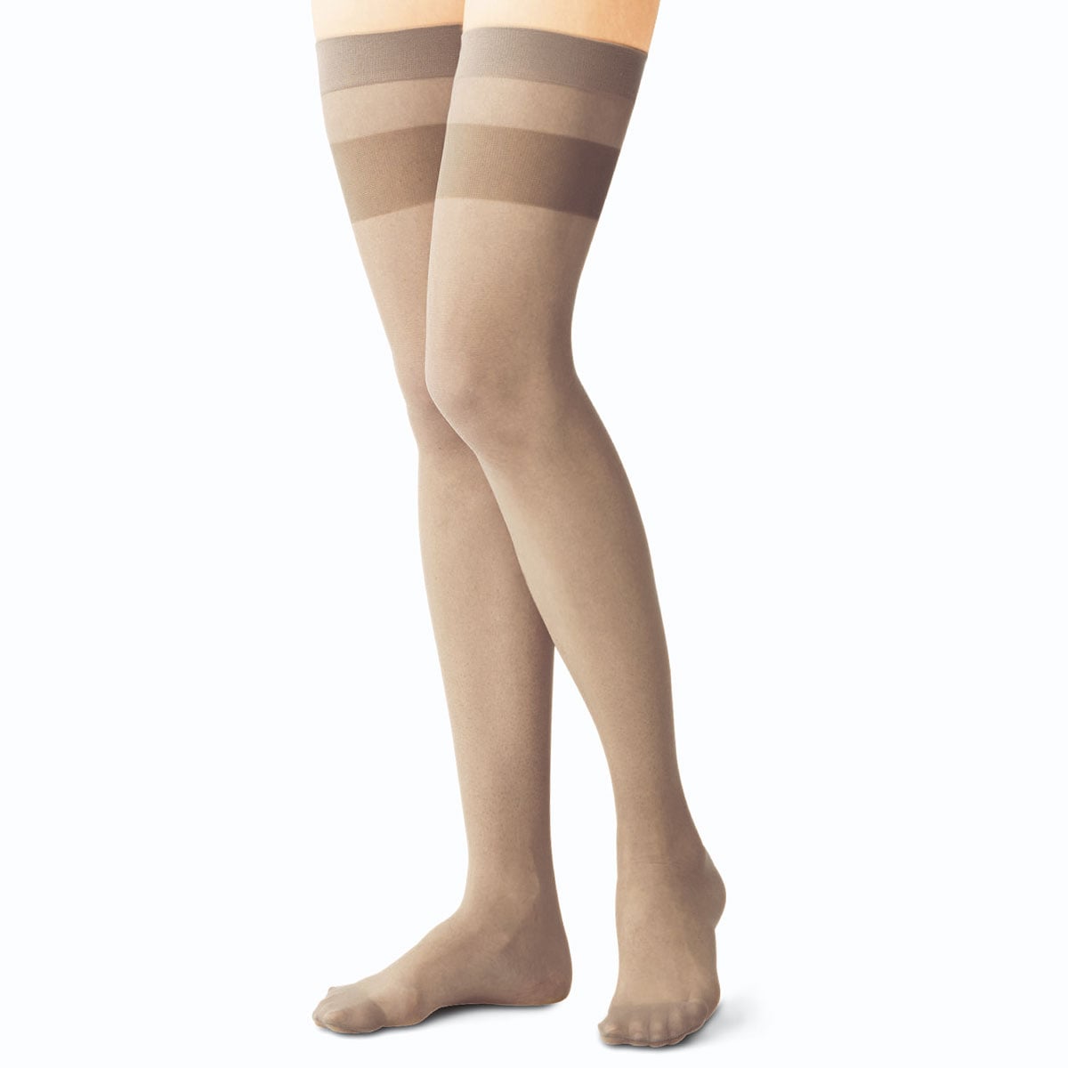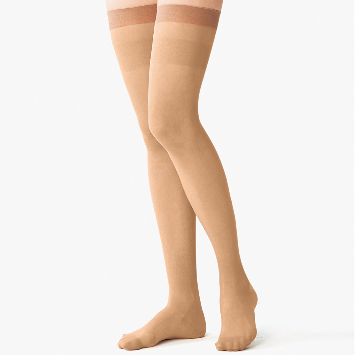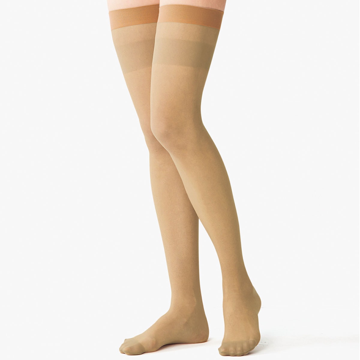 ガータベルト不要のズリ落ちにくいロング丈ストッキング(さらり透明感・しっかりサポート)