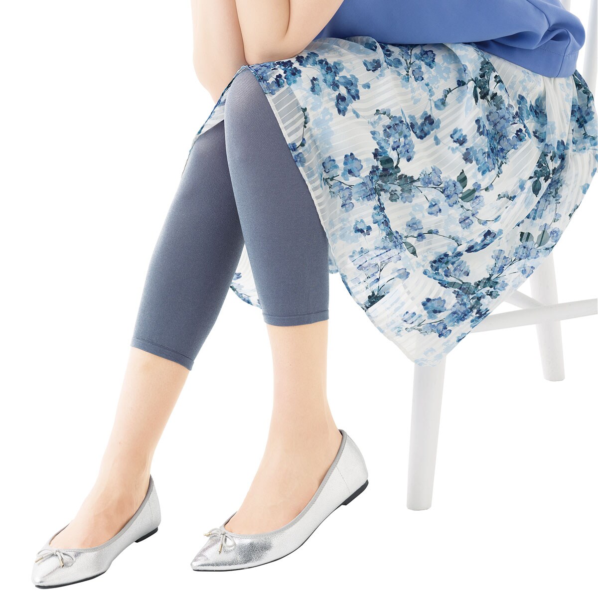 汗・ムレ・冷えが気になる方へ。日差しを防いでパンティ部は涼しいメッシュ素材の7分丈レギンス。